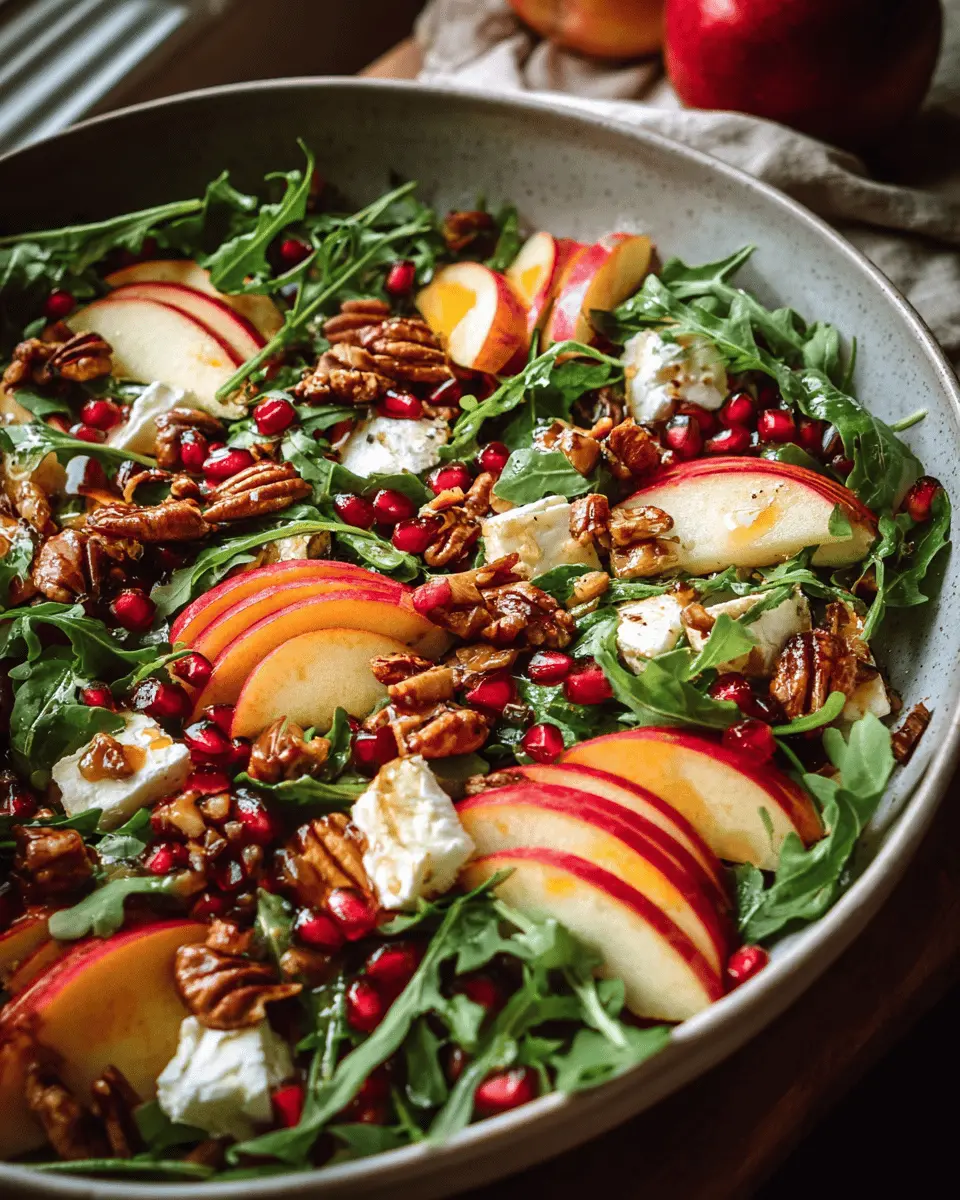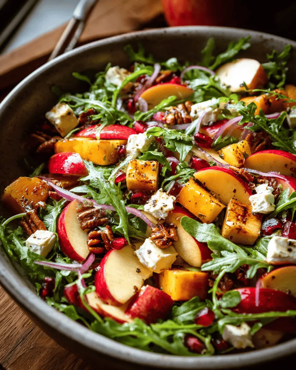 In conclusion, the Autumn Harvest Apple Salad is a delightful combination of flavors and textures that perfectly captures the essence of the fall season. With refreshing apples, crunchy pecans, and creamy feta, this salad makes an easy yet impressive dish for gatherings or a cozy meal at home. Enjoy!