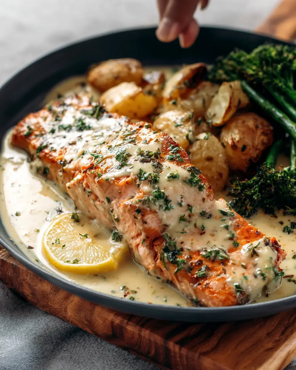 Now it’s time for the grand finale! Once everything is cooked to perfection, serve your beautiful Baked Salmon with Amazing Lemon Sauce alongside the roasted potatoes and broccoli. Drizzle generous spoonfuls of your life-changing sauce over the top, sprinkle with more fresh herbs, and don’t forget those lemon wedges on the side to enhance every bite. This is not just dinner; it's a moment to savor. Enjoy every delicious bite and share with friends—good food is meant to be shared!