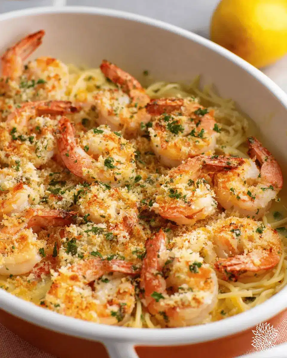 While enjoying baked shrimp scampi, consider complementing the dish with a crusty ciabatta or garlic bread. These will soak up the delicious sauce and enhance your dining experience. For those who prefer alternatives, try pairing it with quinoa or rice pilaf for a heartier meal. A refreshing, non-alcoholic sparkling lemon-lime drink can also enhance the dish without overpowering its delicate flavors.