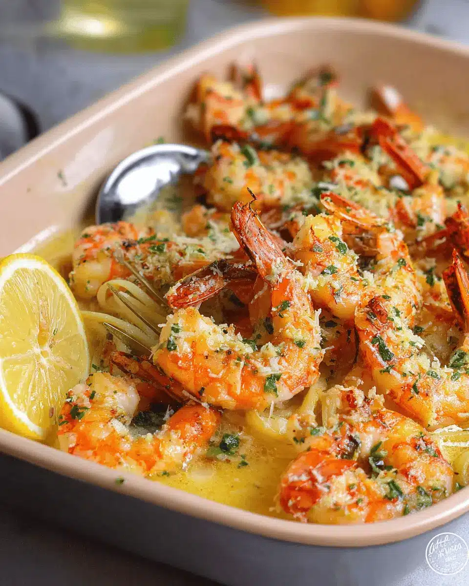 Transform your Baked Shrimp Scampi into a decadently creamy version by adding about ¼ cup of heavy cream after baking. This rich addition will give the dish a smooth, velvety texture that pairs wonderfully with the shrimp and pasta. The cream melds beautifully with the garlic and lemon flavors, making each bite indulgent. For an extra twist, consider incorporating a handful of spinach during the mixing process—it adds color, nutrients, and a delightful earthiness.
