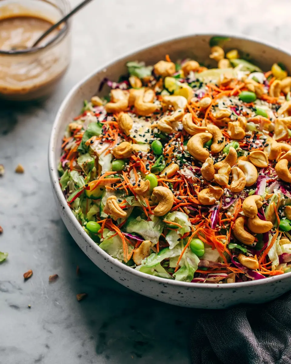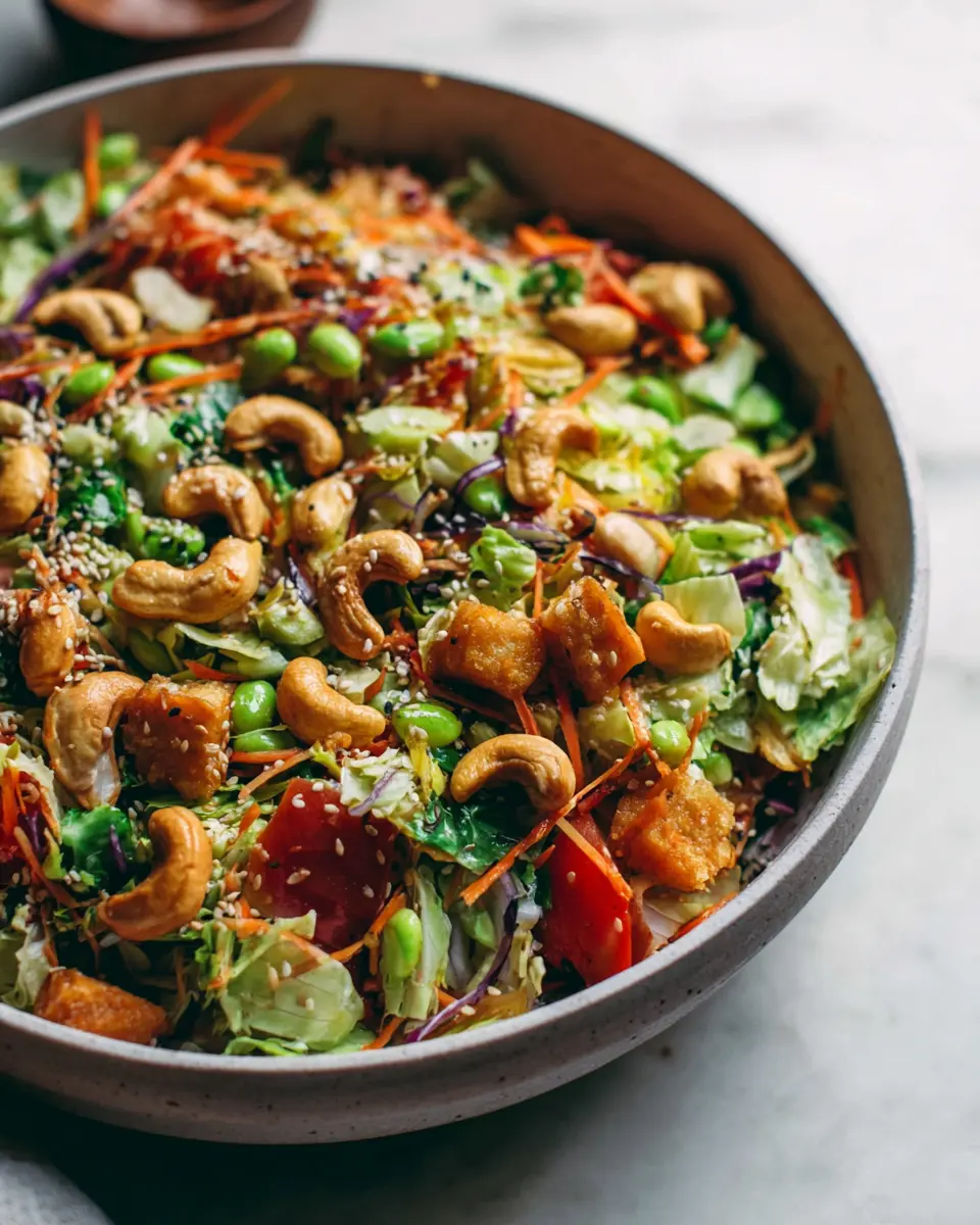 In conclusion, the Cashew Crunch Salad with Sesame Dressing is a delightful, refreshing dish that's both nutritious and easy to prepare. Perfect for a quick lunch or a crowd-pleasing side at gatherings, it brings together vibrant flavors and textures. Enjoy experimenting with ingredients to suit your taste!
