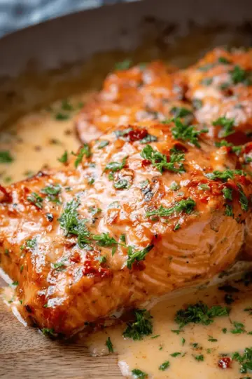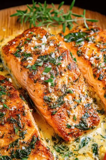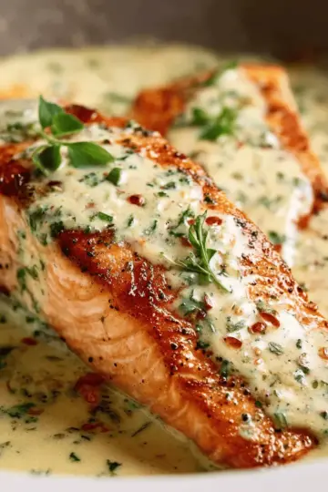 Salmon with Herb & Garlic Cream Sauce: A Decadent Delight at Home
