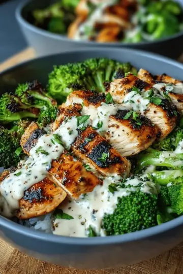 Grilled Chicken Broccoli Bowls: Easy Creamy Garlic Delight
