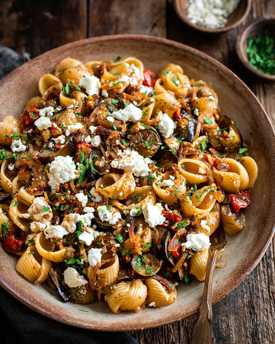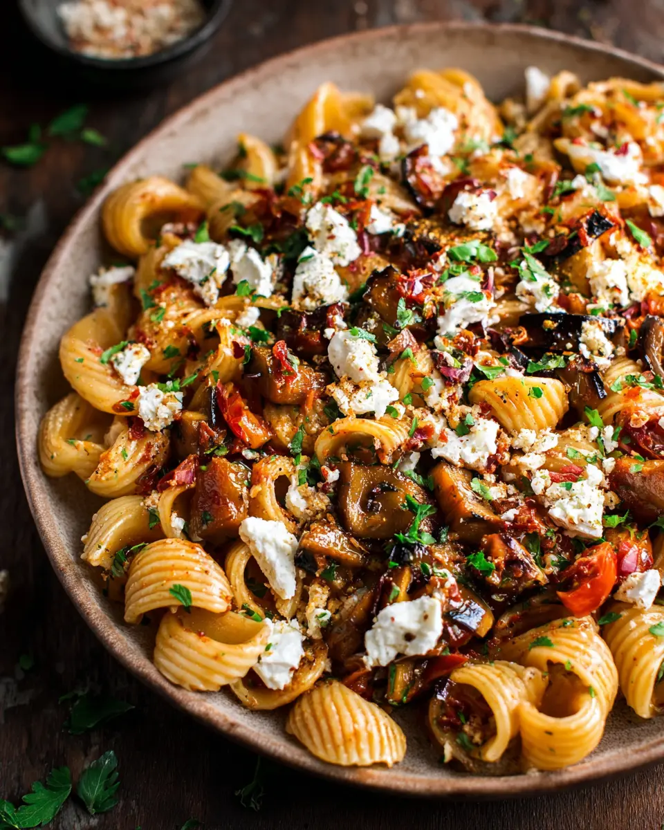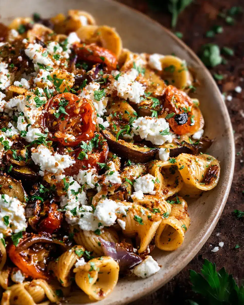 Charred Eggplant Pasta with Tomatoes & Goat Cheese