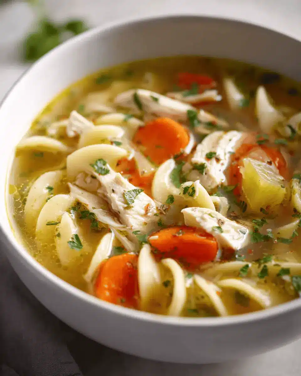 Absolutely! Freezing your Chicken Noodle Soup is a great way to preserve that comforting flavor. Just allow the soup to cool completely and transfer it to a freezer-safe container. It can last for about 2-3 months in the freezer. When you’re ready to enjoy it again, simply thaw it overnight in the fridge or reheat it gently on the stove. If using store-bought noodles, consider undercooking them slightly before freezing to avoid mushiness.