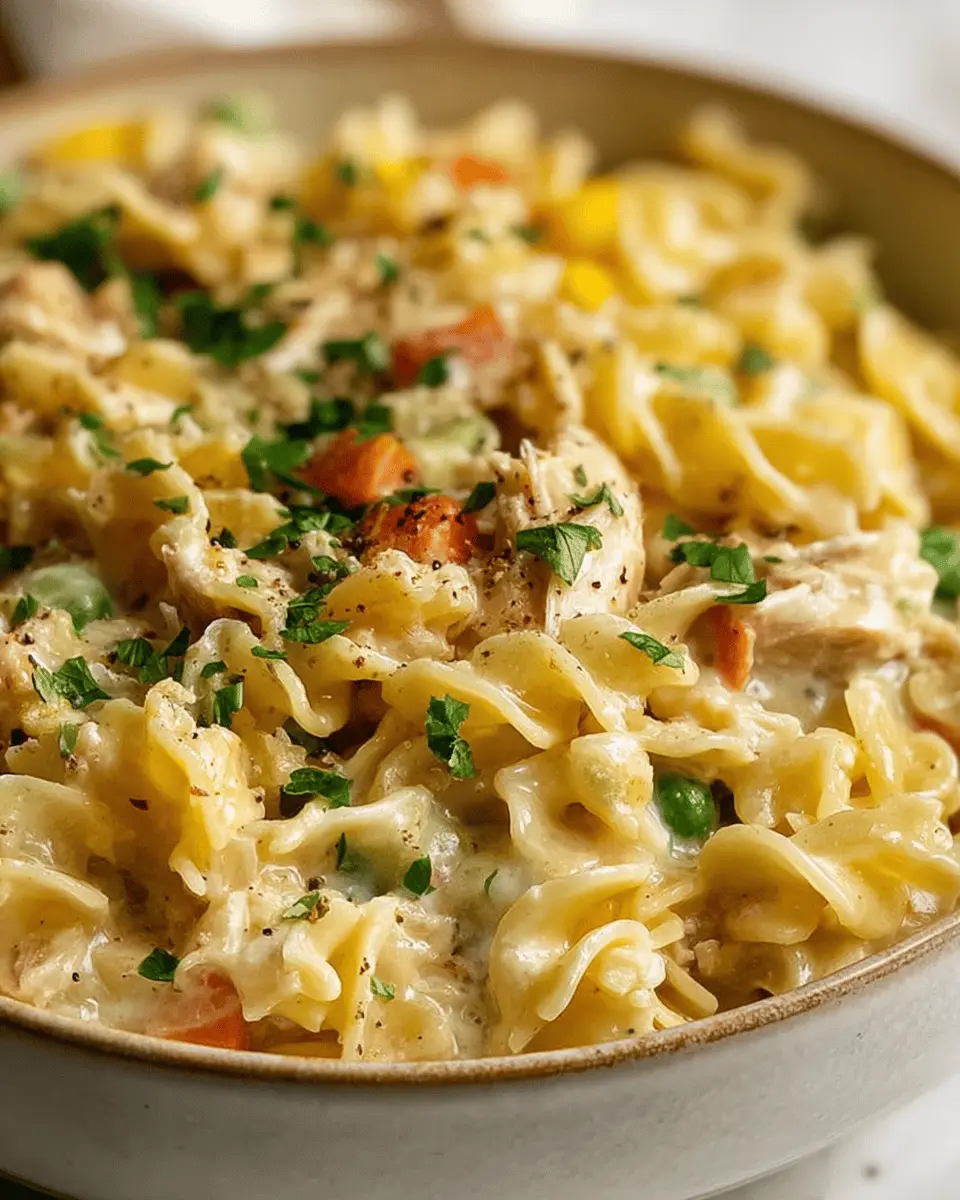 This recipe is perfect for busy weeknights when you want to whip up something that feels indulgent but doesn’t keep you in the kitchen for hours on end. The combination of tender egg noodles, savory vegetables, and shredded chicken in a creamy sauce makes for a filling dish that can easily please the whole family. Plus, it’s a fantastic way to use up leftover chicken!
