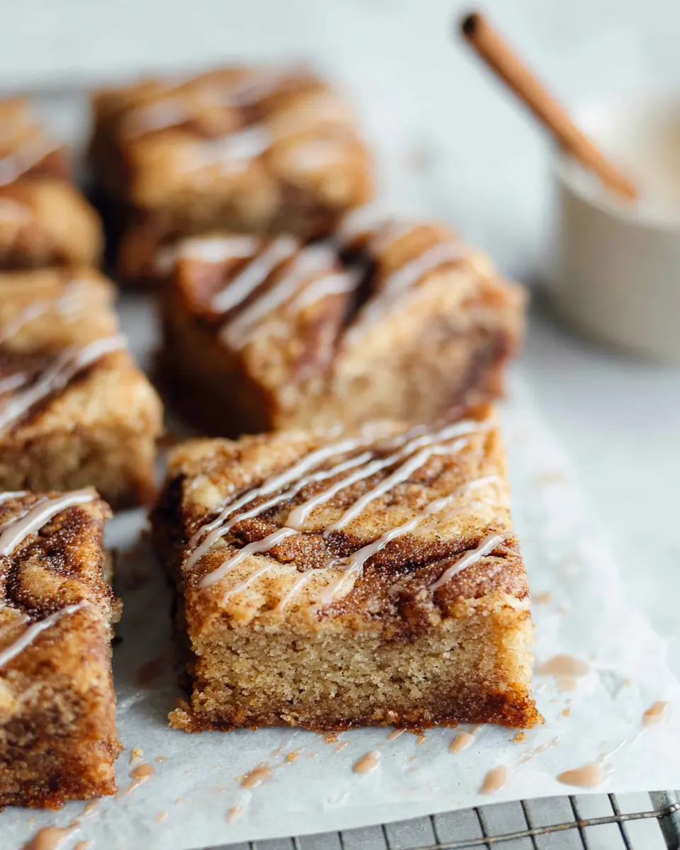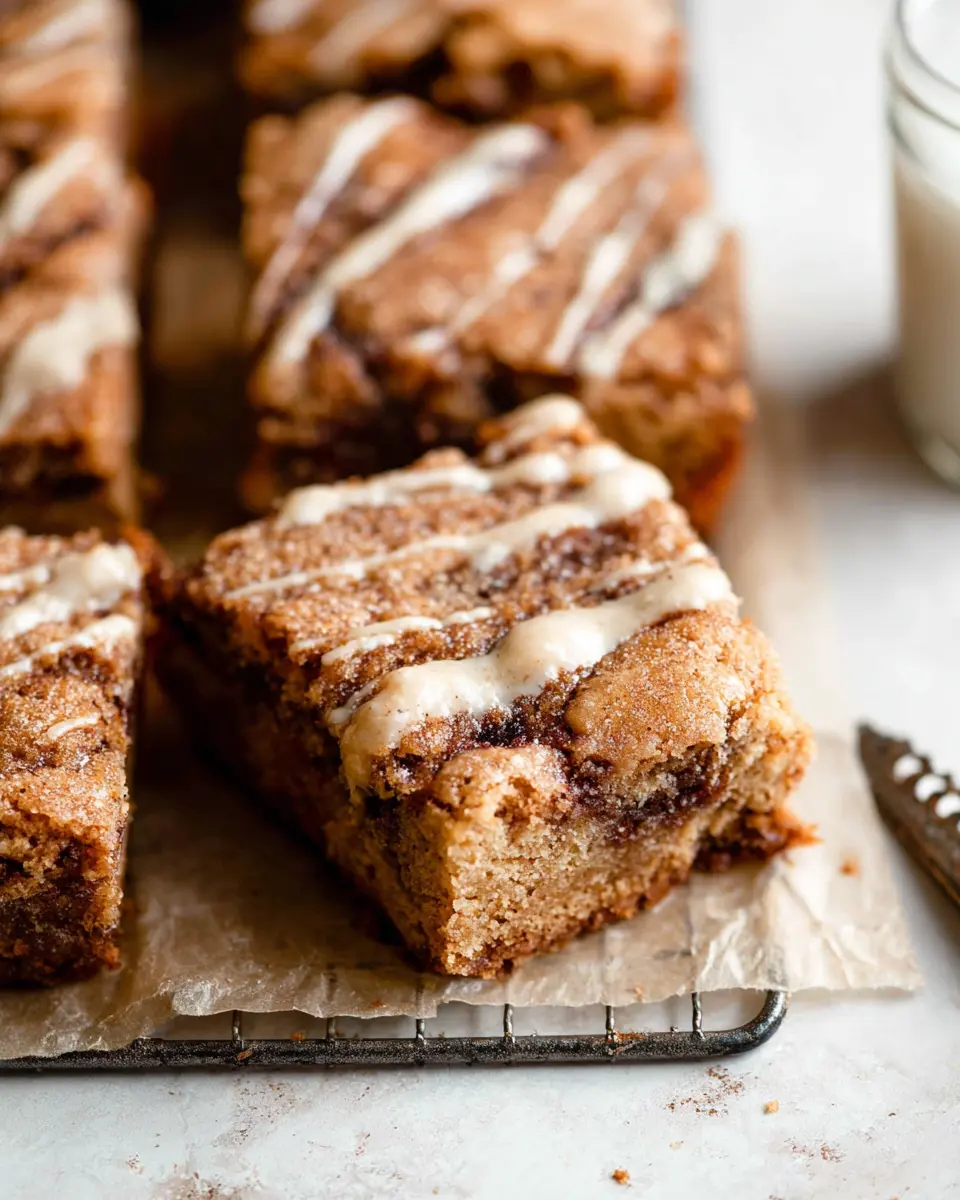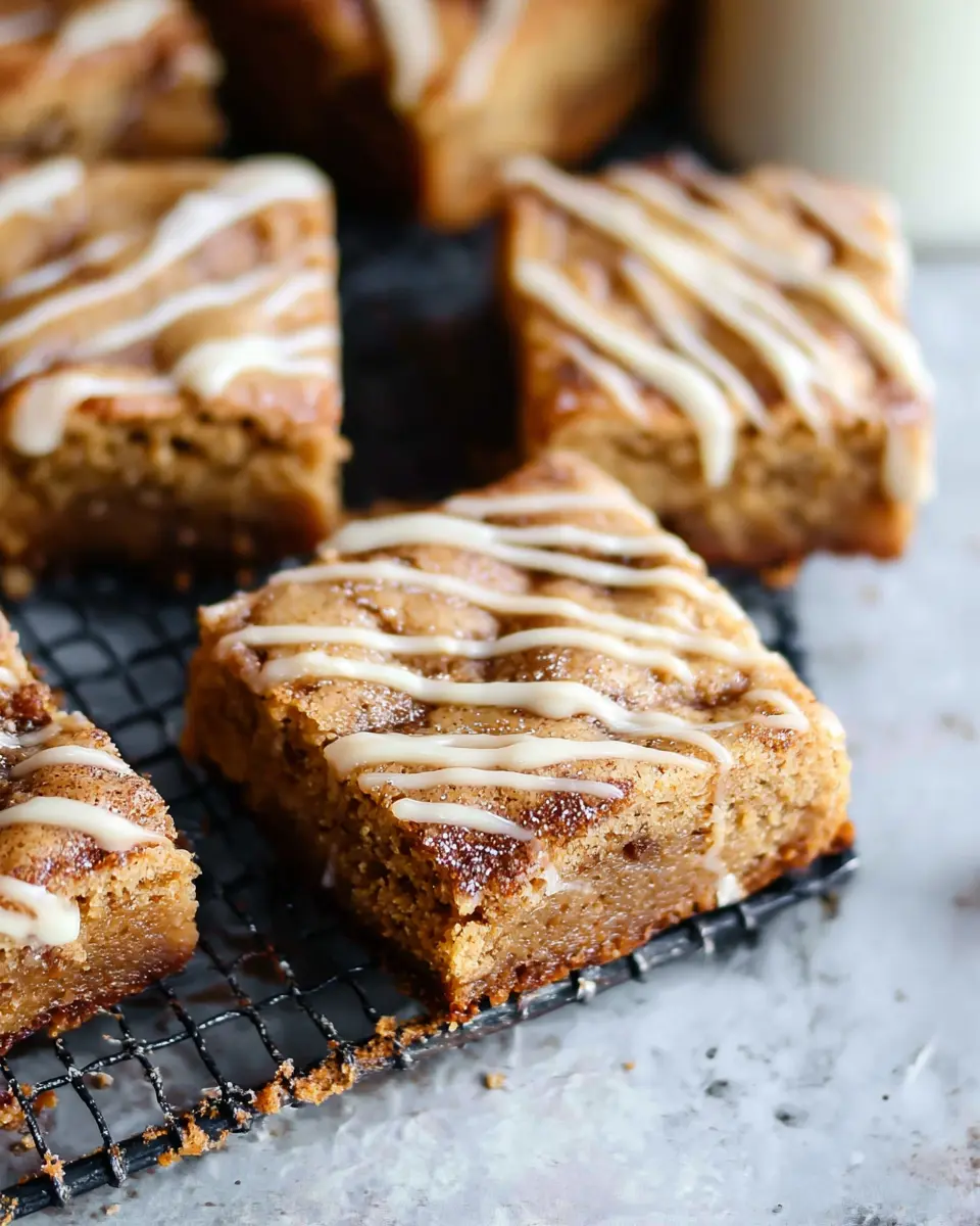 Once your blondies have cooled completely, take that delicious cream cheese icing and drizzle it generously over the top. Let it set for a moment, then slice them into squares. Perfect for sharing (or not)! Each bite of these cinnamon roll blondies is sure to be a heavenly treat that you’ll want to enjoy regularly.
