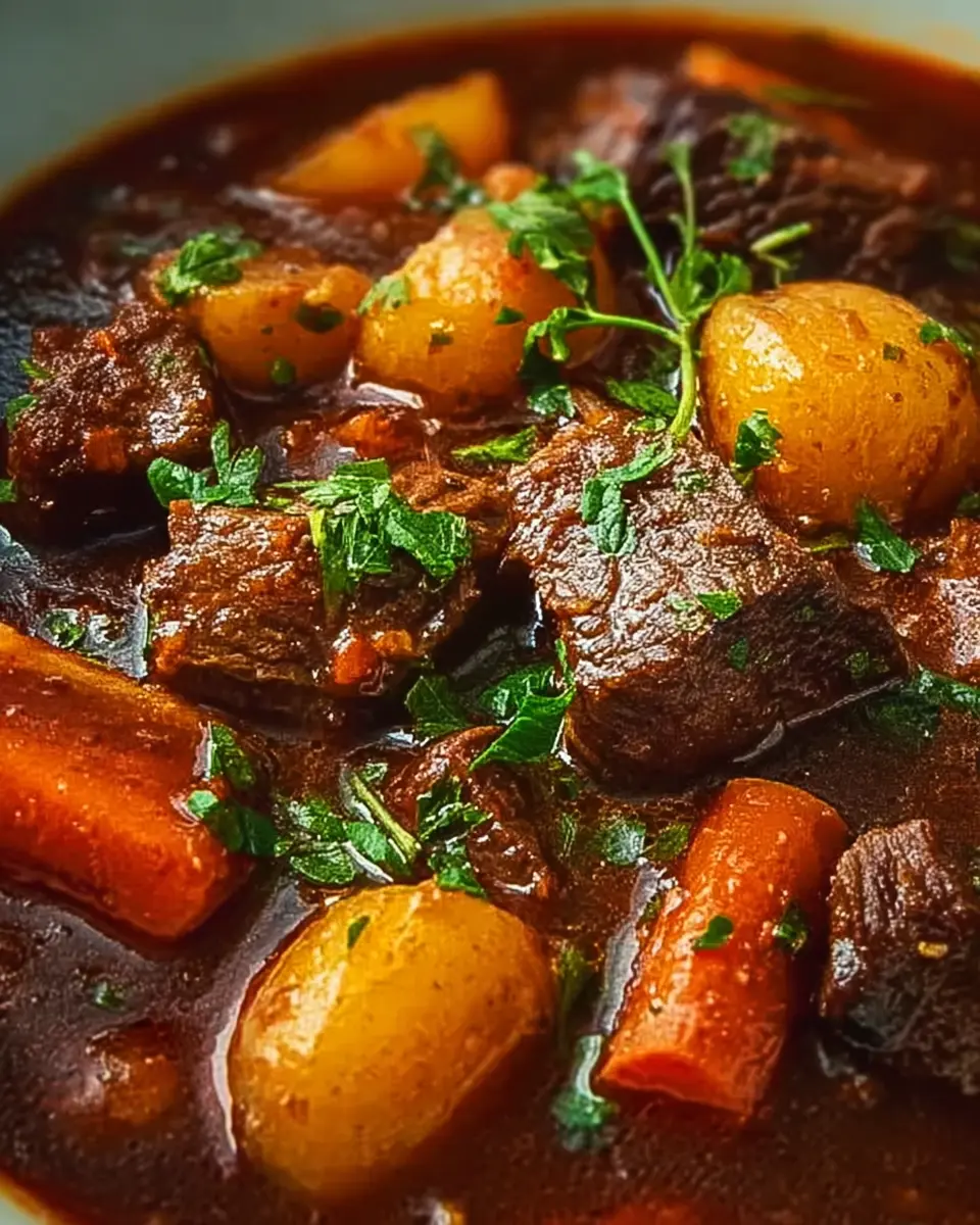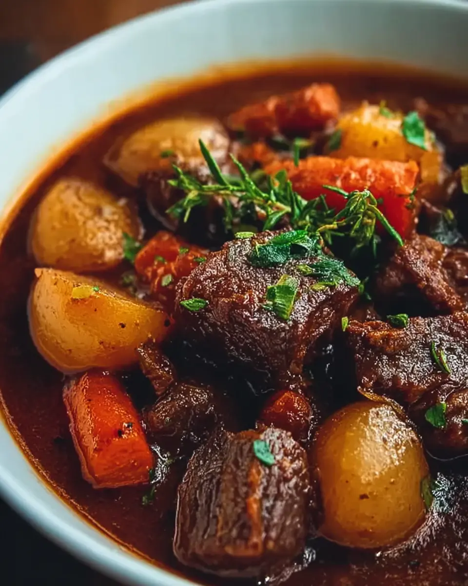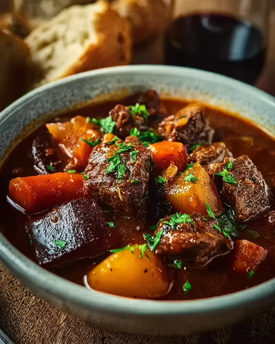 Classic French-Style Beef Stew with Red Wine and Winter Vegetables