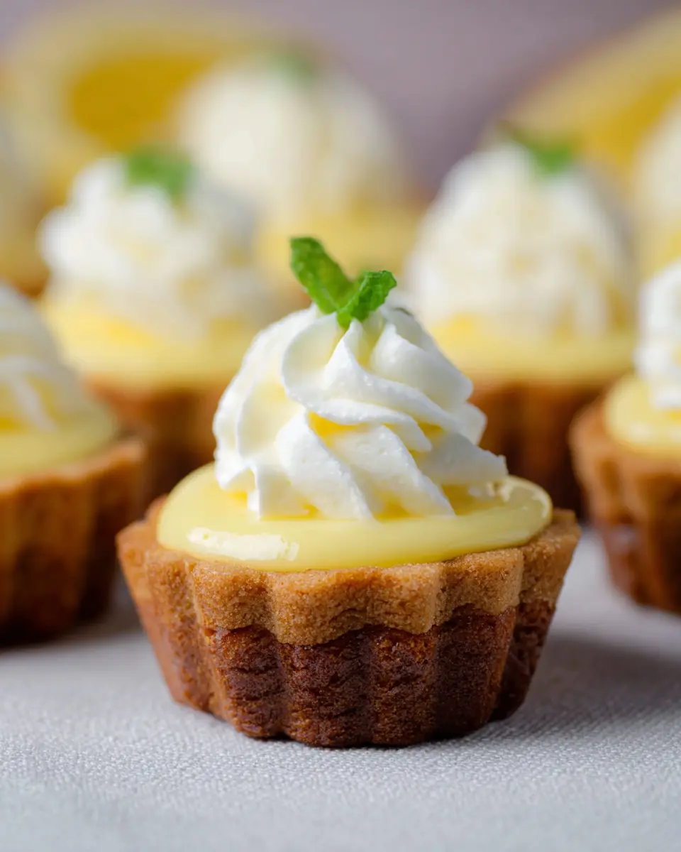 Now for the fun part! Once the cookie cups are completely cooled, fill each cup with about 1 teaspoon of lemon curd—using a spoon or piping bag works great here. Top each lemon-filled cookie cup with a generous swirl of whipped cream. If you want to jazz things up, consider garnishing with fresh berries or mint leaves for a pop of color and flavor.