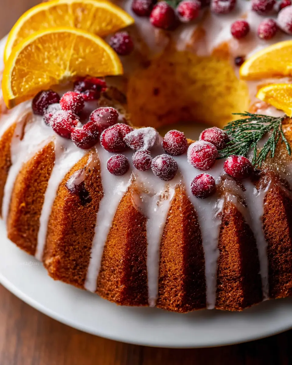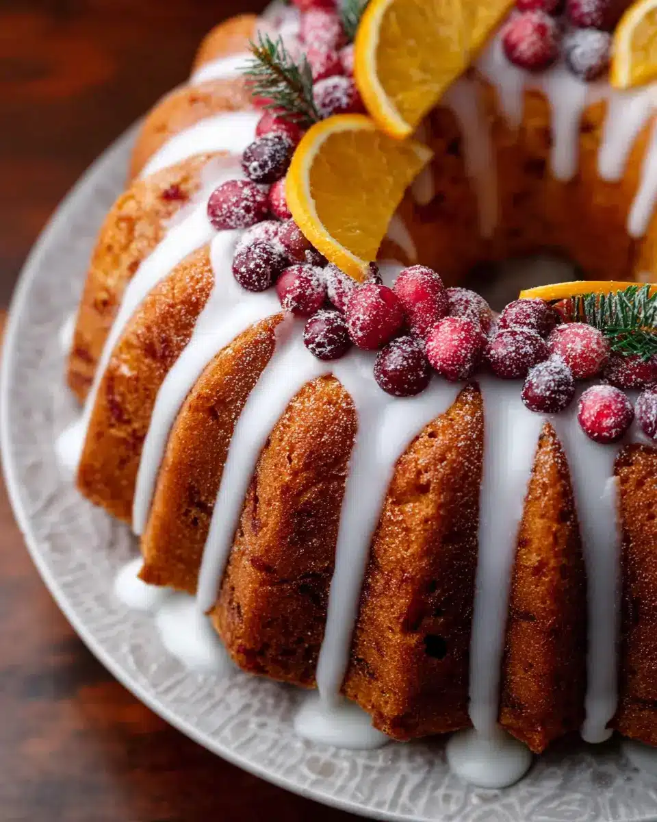 Make your Cranberry Orange Bundt Cake visually stunning and appetizing with a few simple garnishes. Dust it with powdered sugar for a touch of elegance, or top it with candied orange slices for a vibrant pop. You could serve individual slices with a dollop of whipped cream or a scoop of vanilla ice cream — both will bring out the delightful flavors beautifully. For a special touch, consider adding fresh cranberries and orange zest on the serving platter to tie everything together.