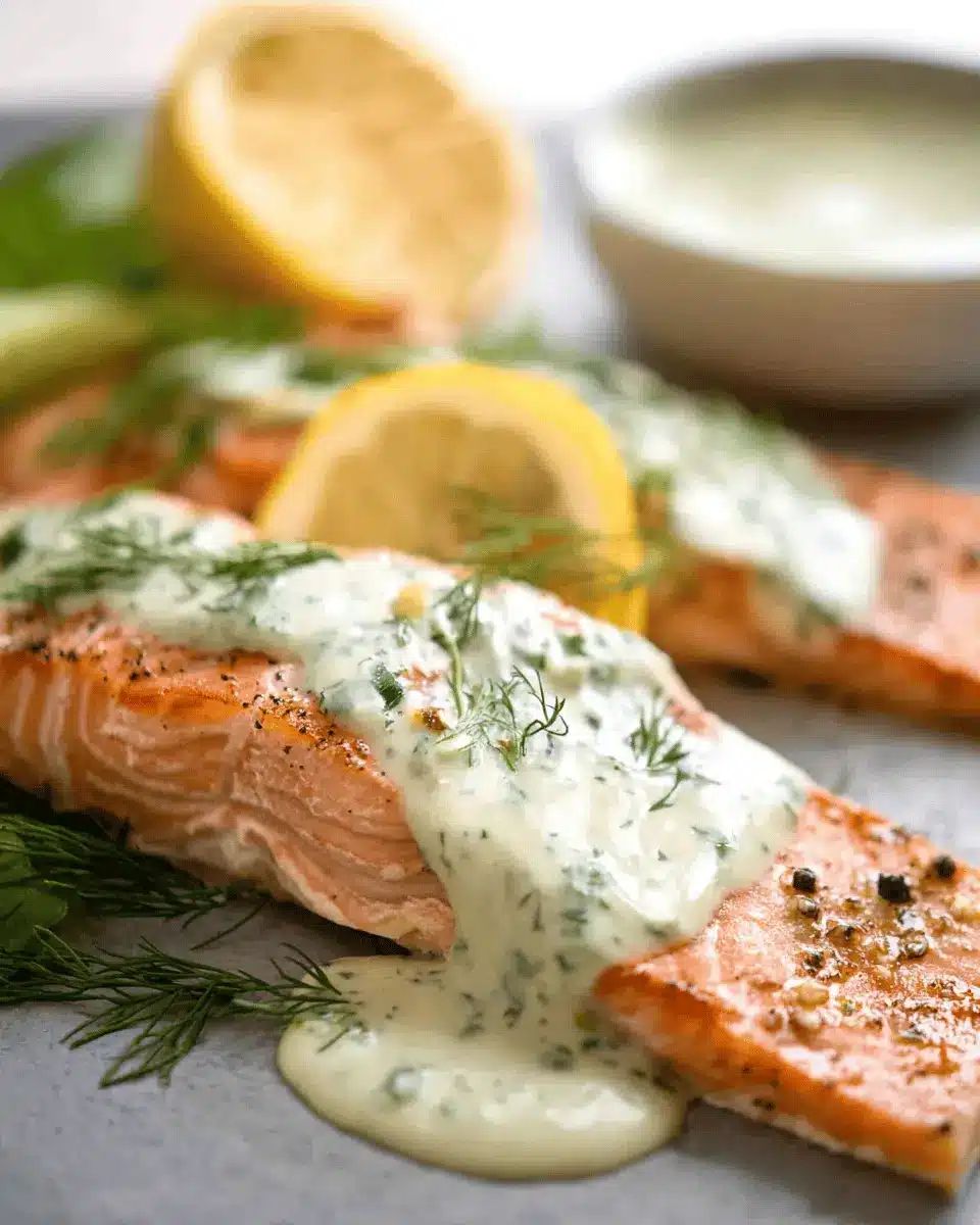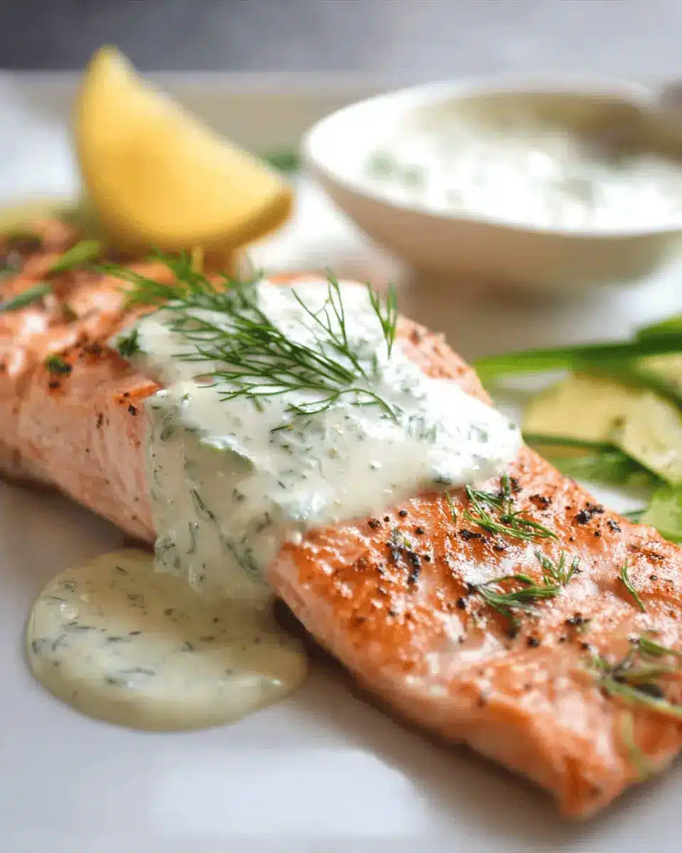 While this sauce is perfect for salmon or trout, it also complements a variety of dishes. Try it with grilled chicken, roasted vegetables, or as a dip for fresh veggies and crackers. It adds a creamy, herbaceous touch that brightens up any meal!