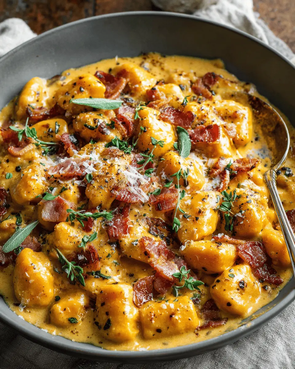 Introduction to Creamy Pumpkin Gnocchi with Turkey Bacon