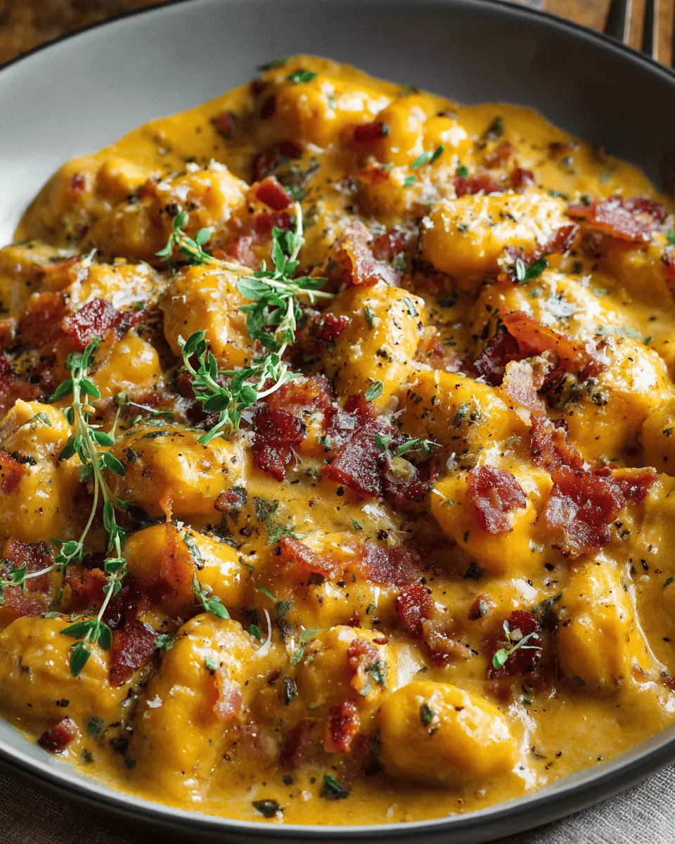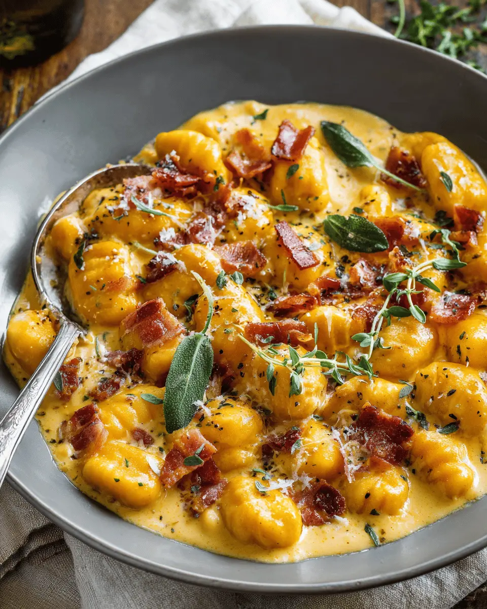Creamy Pumpkin Gnocchi with Turkey Bacon: A Cozy Fall Delight
