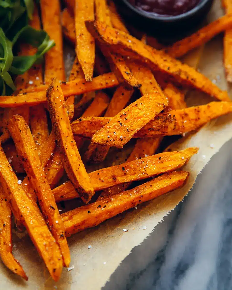 Crispy baked sweet potato fries are an incredible standalone snack that can satisfy your cravings anytime. You can enjoy them with your favorite dipping sauces, like a zesty aioli or classic ketchup. These fries also pair beautifully with main dishes like grilled chicken or veggie burgers, adding that perfect touch of sweetness and crunch.