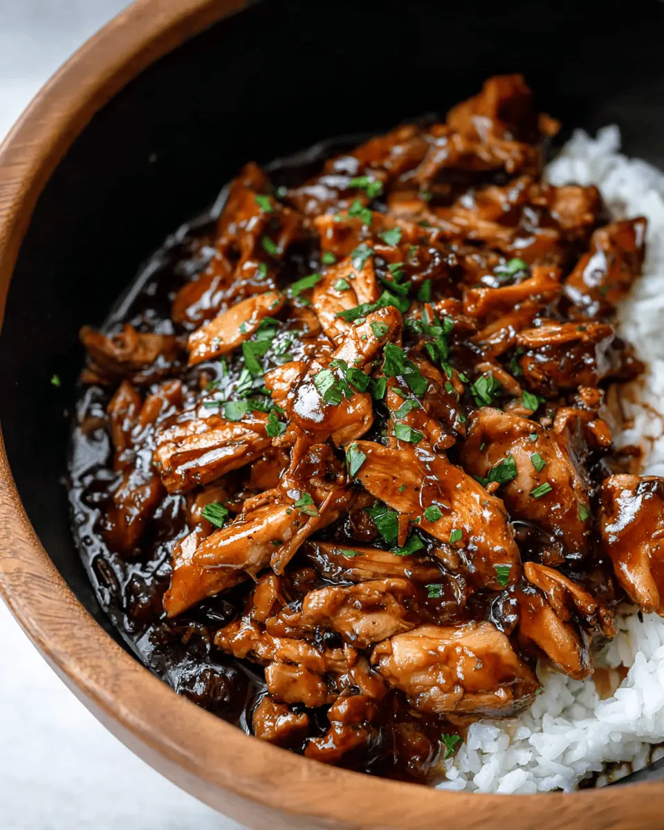 Once the cooking time is up, it’s time to serve your Crockpot Bourbon Chicken. Grab a fork and shred the chicken right inside the pot, allowing it to soak up all that thick sauce. Serve it over a bed of fluffy rice and don’t forget to garnish with chopped green onions if you have them on hand. Your taste buds are in for a treat; this dish is sure to impress your family and friends!