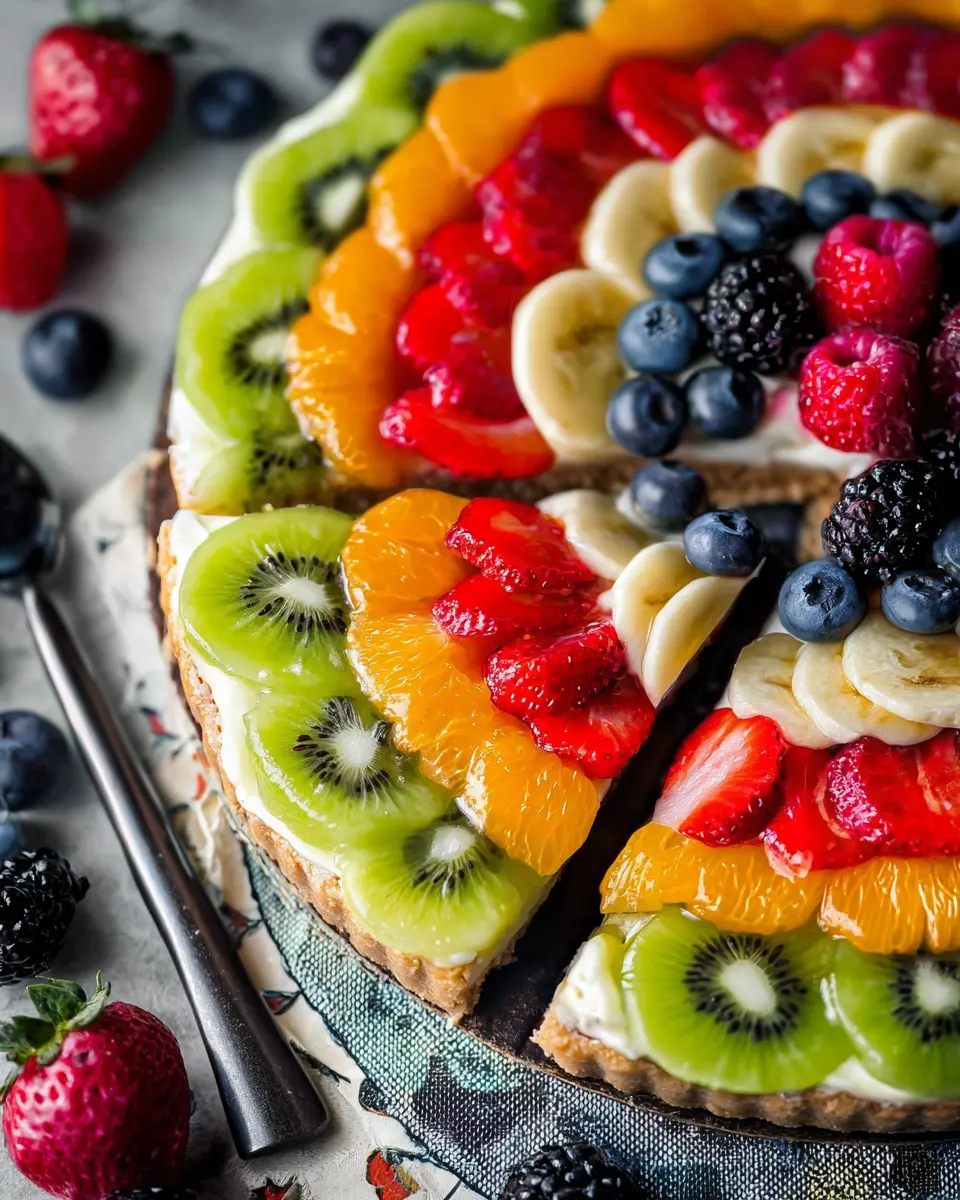 This fruit pizza is not just a sweet treat; it packs a punch of vitamins! You'll gain about 45 mg of Vitamin C, boosting your immune system, along with 936 IU of Vitamin A for healthy skin and eyesight. Such benefits make this dessert not only delicious but nutritionally rewarding!