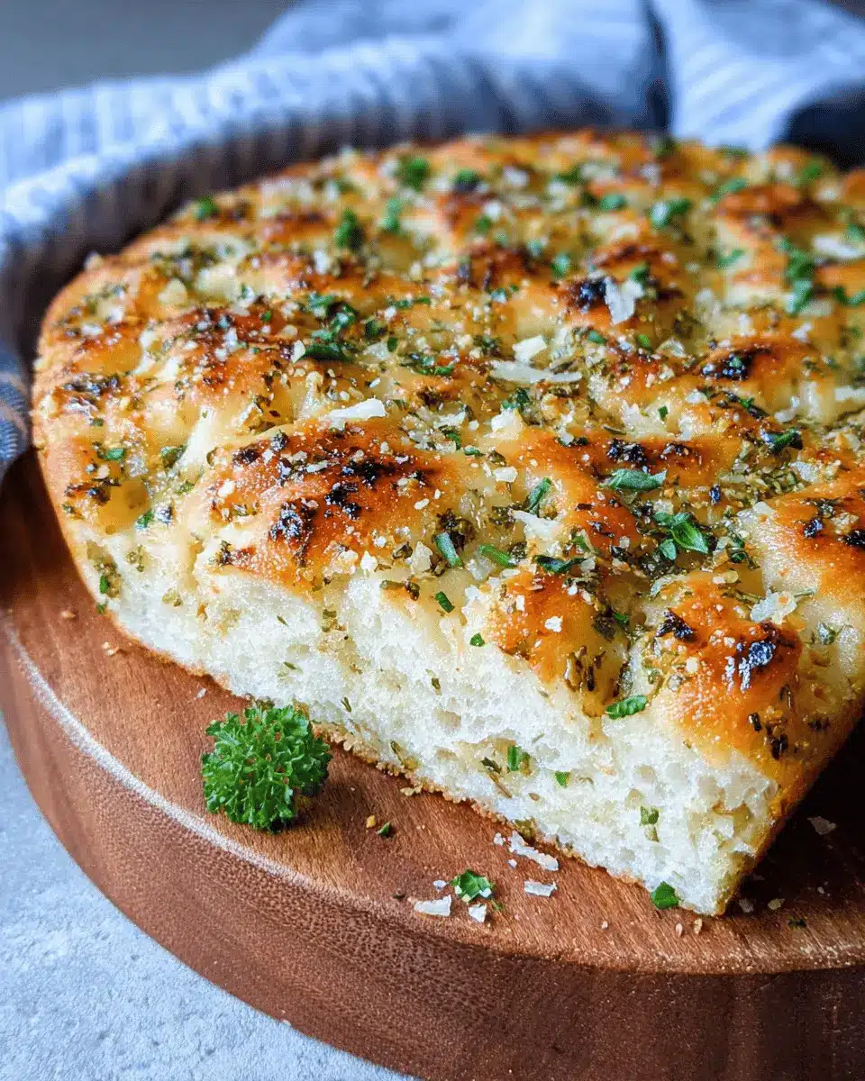 To get that fluffy, airy texture in your Garlic Parmesan Focaccia Bread, room temperature matters! Ensure your ingredients are warm, especially the water. This activates the yeast faster. Let your dough rise in a cozy spot, away from drafts. Try placing it near a warm oven or in a sunny spot. The longer, the better—an overnight rise in the fridge will deepen the flavor!