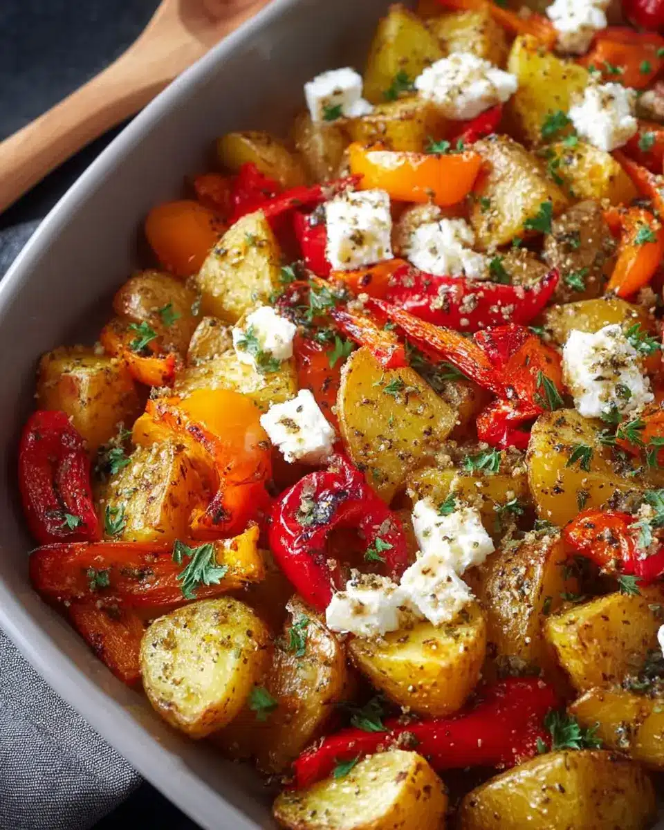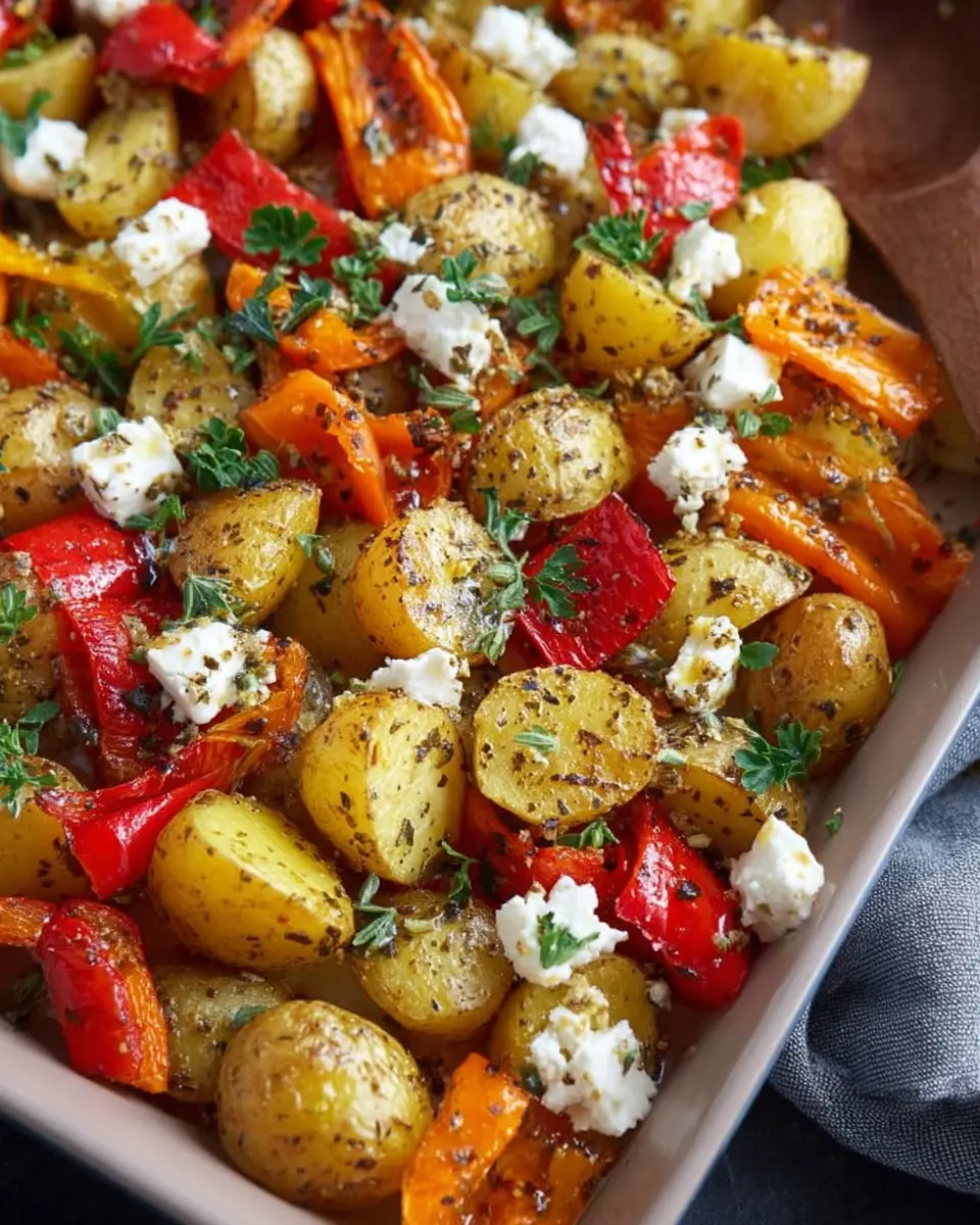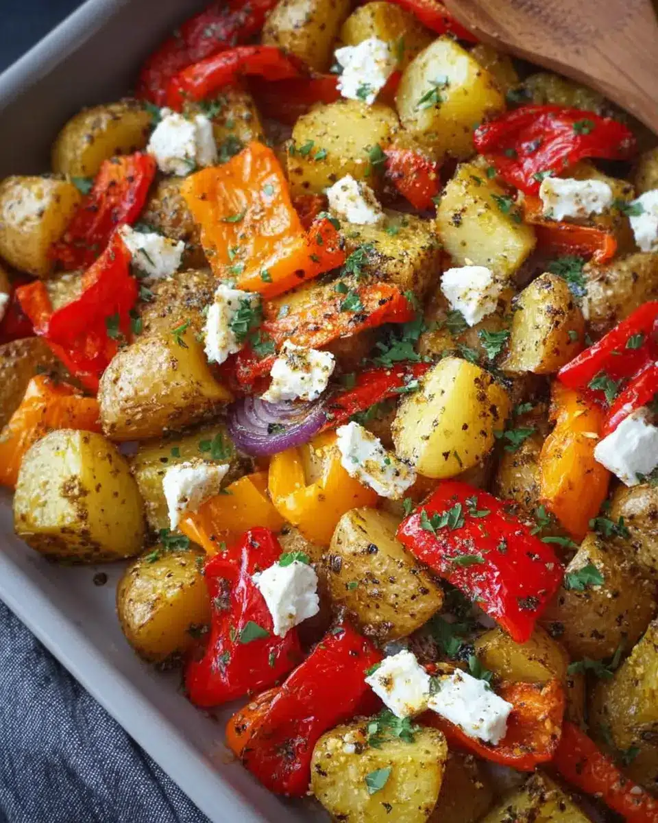 Introduction to Greek Roasted Potatoes with Peppers and Feta
