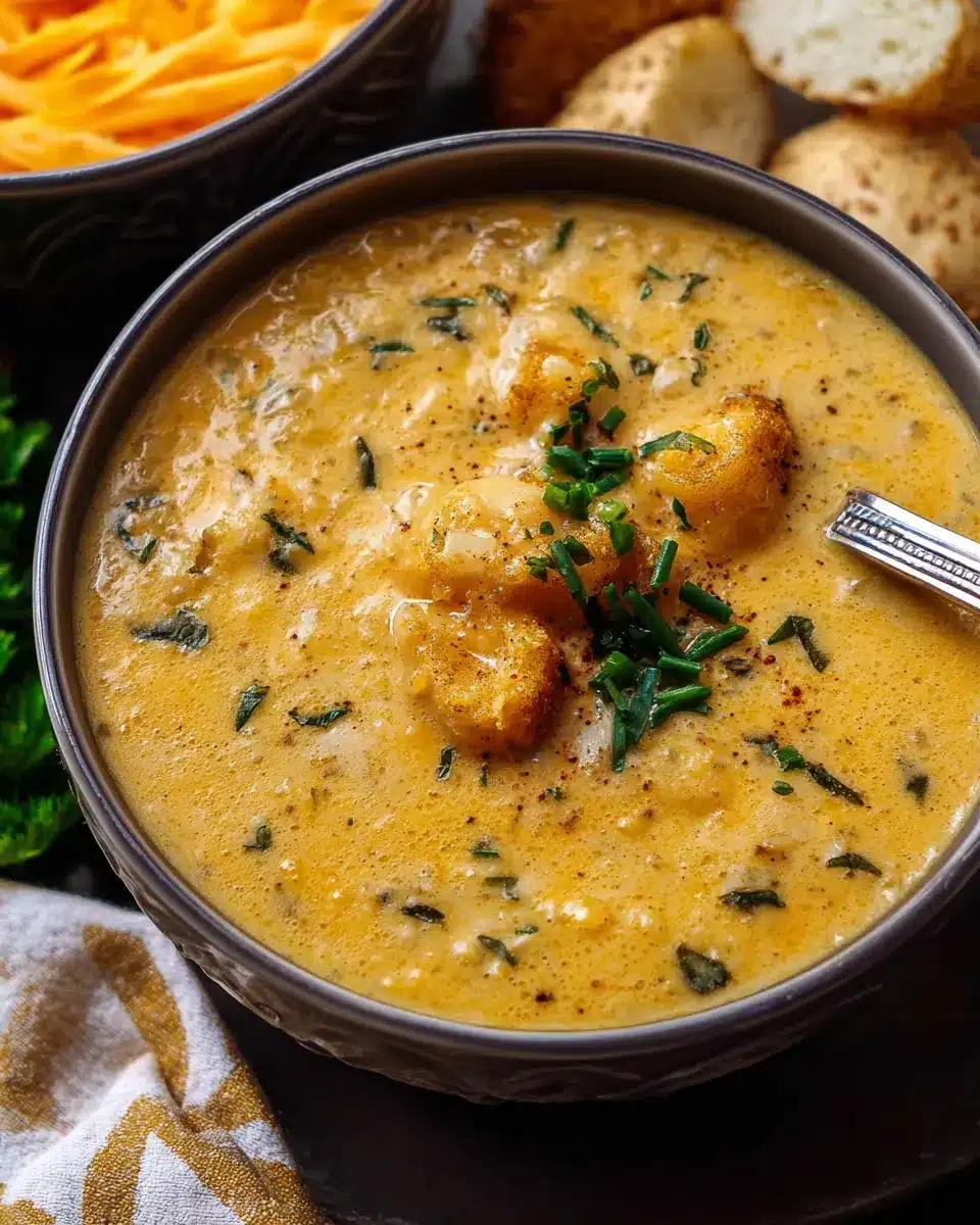 Want to enjoy this luxurious soup on a hectic evening? Make it in advance! Prep the soup up to the point of adding the cheese and cream, then store it in an airtight container in the refrigerator for up to five days. When you’re ready to eat, reheat gently on the stove and mix in your cheese and cream before serving. For an even quicker option, consider freezing the soup in individual portions—perfect for those busy nights when you just need a warm and hearty meal!