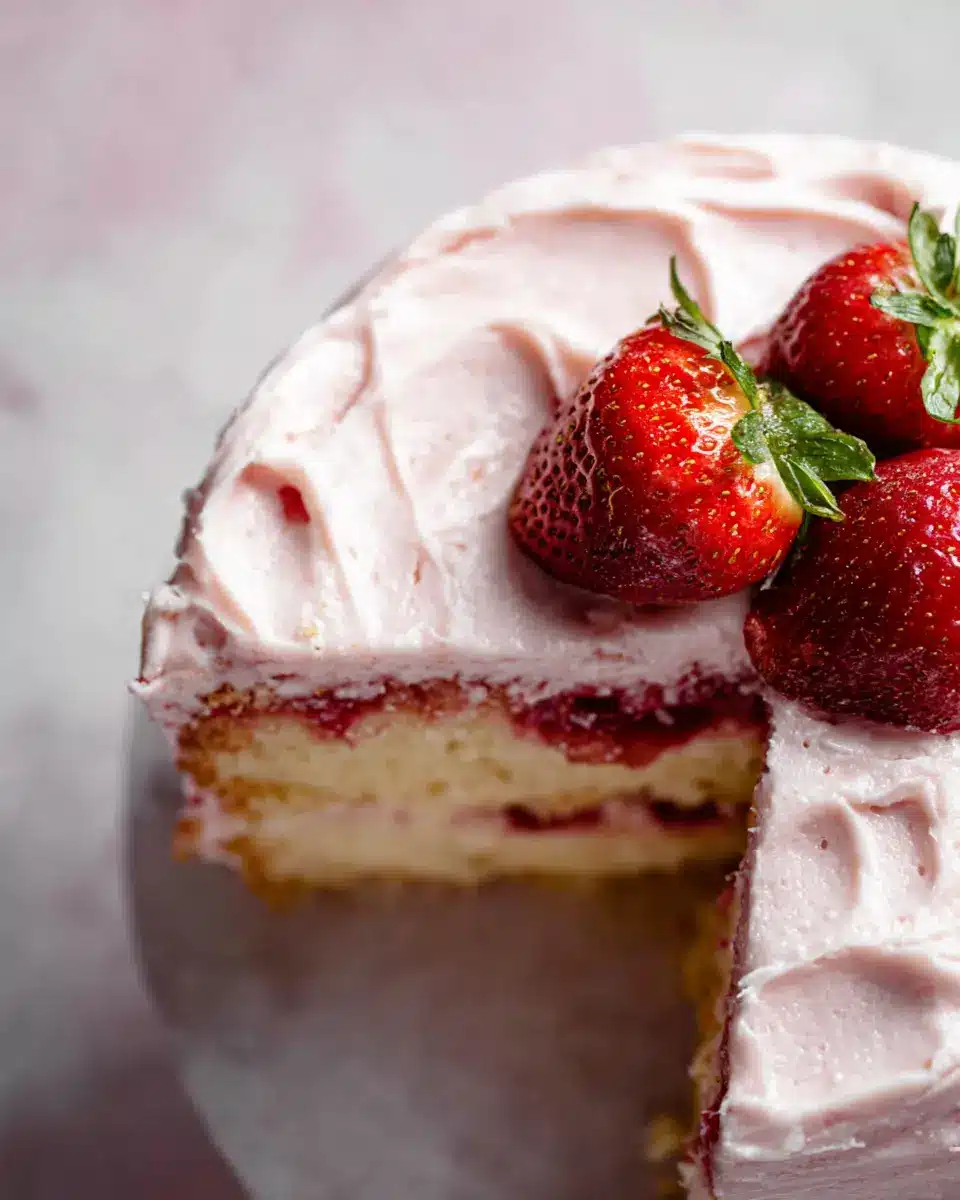 - Use Fresh Strawberries: Choose ripe, in-season strawberries for the best flavor. Frozen strawberries can moisten the cake too much.
