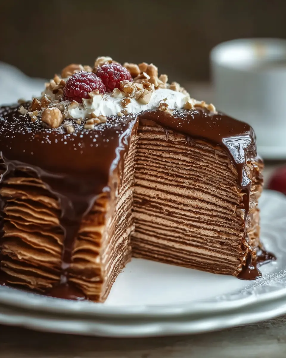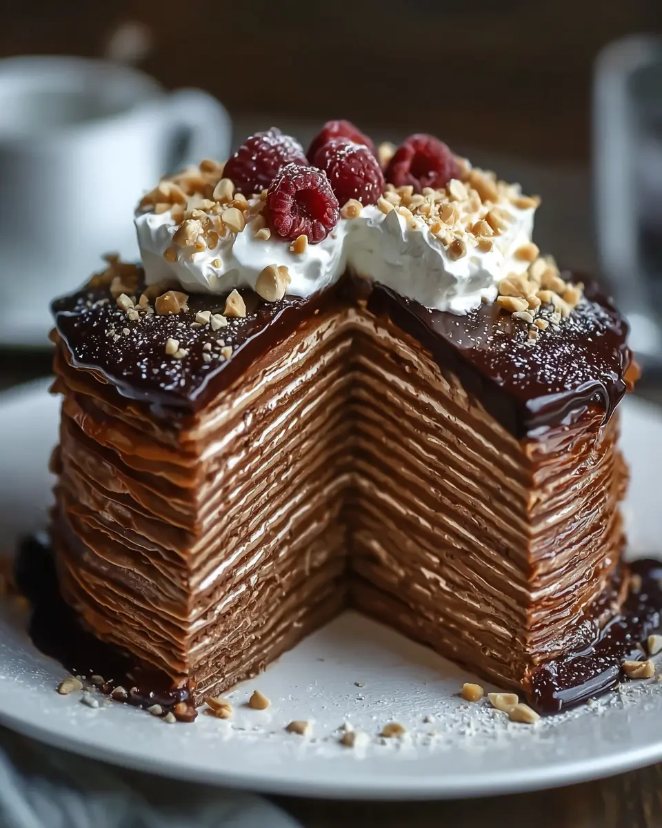 Indulge in Rich Chocolate Hazelnut Crepe Cake Layers