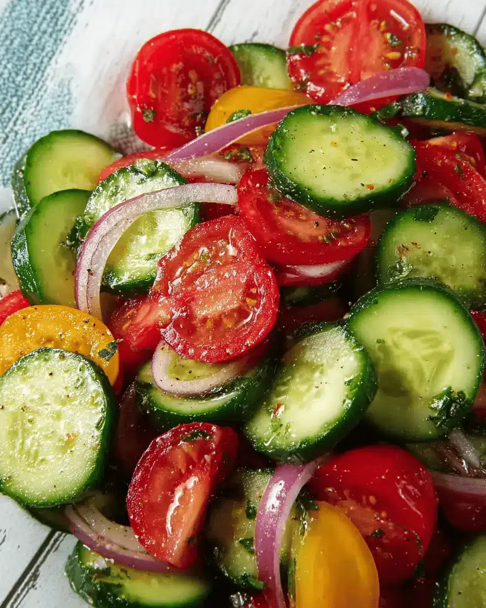 Creating an Italian Tomato Cucumber Salad is a delightful way to celebrate fresh produce and Mediterranean flavors. This simple yet delicious salad is perfect for any occasion, whether it’s a casual weeknight dinner or a lively gathering with friends. Let’s get started on preparing this vibrant dish!