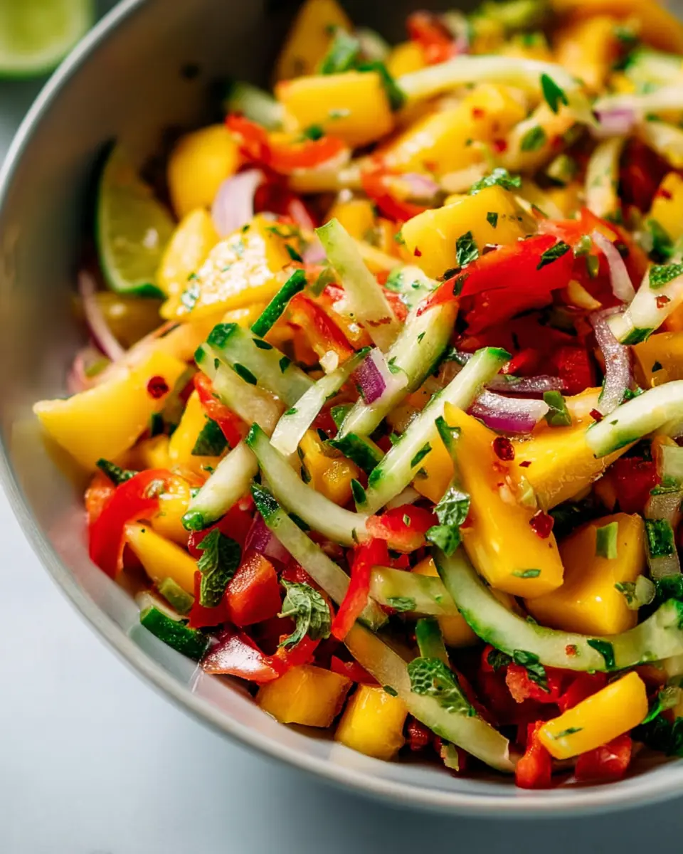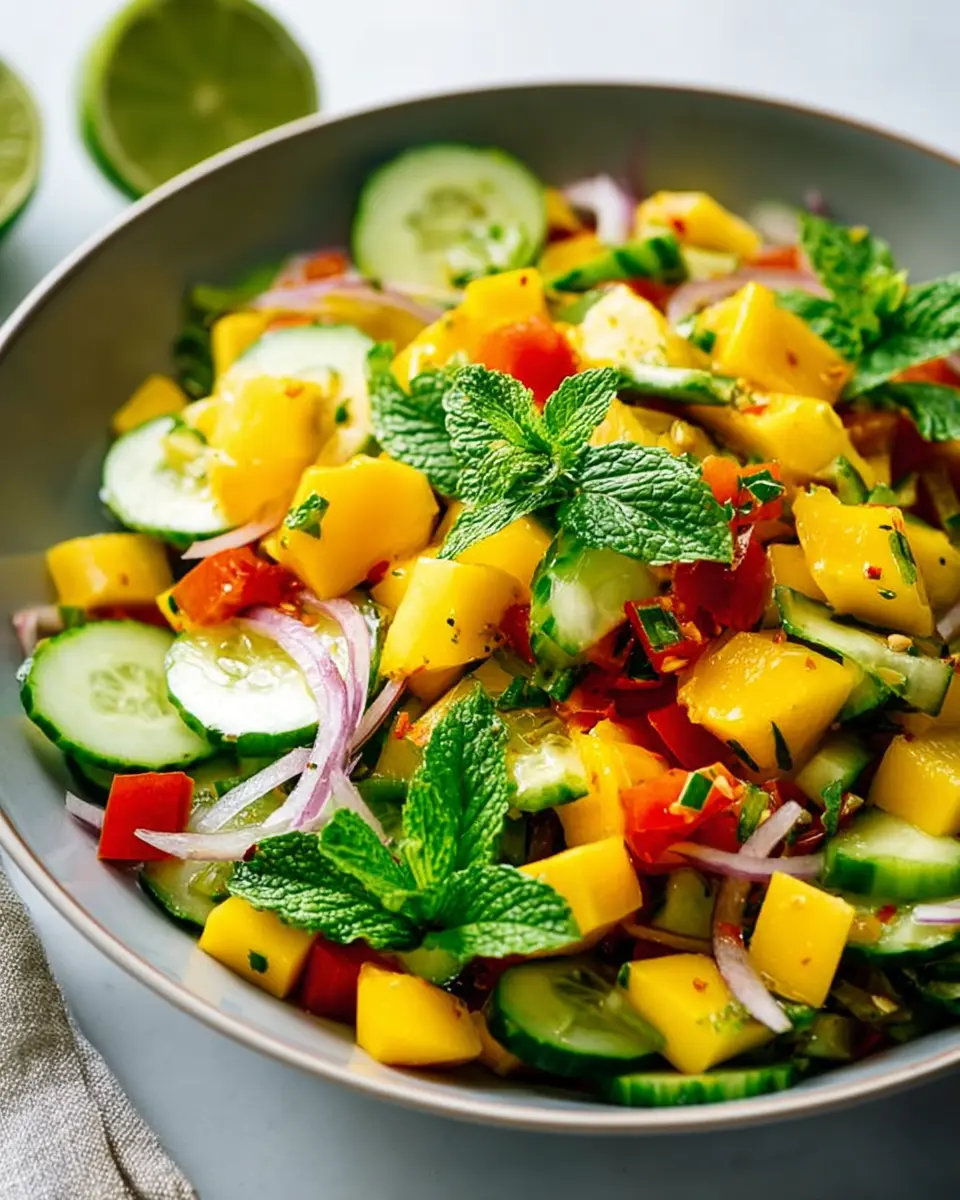 The Mango Salad with Lime is an effortless way to elevate your culinary repertoire. Bright, tropical flavors combined with fresh herbs make it a go-to recipe for any season. Plus, it’s a nutrient-packed option that caters to various dietary preferences. For additional reading, check out these benefits of eating mangoes or explore how to make the most of citrus fruits. Creating this salad is not just a cooking task; it’s an invitation to enjoy the sunny, uplifting essence of fresh ingredients. Dive into this delightful dish and share it with friends and family!