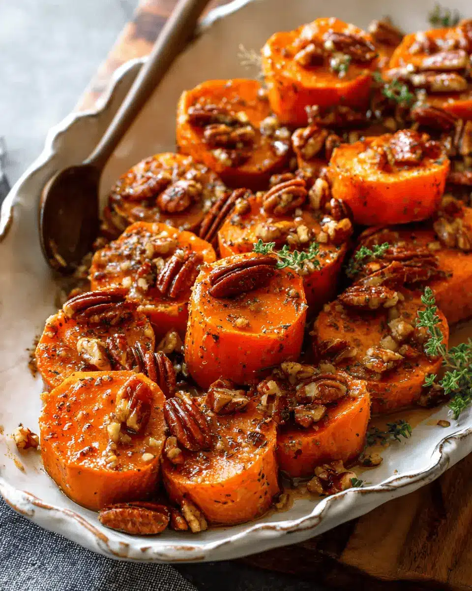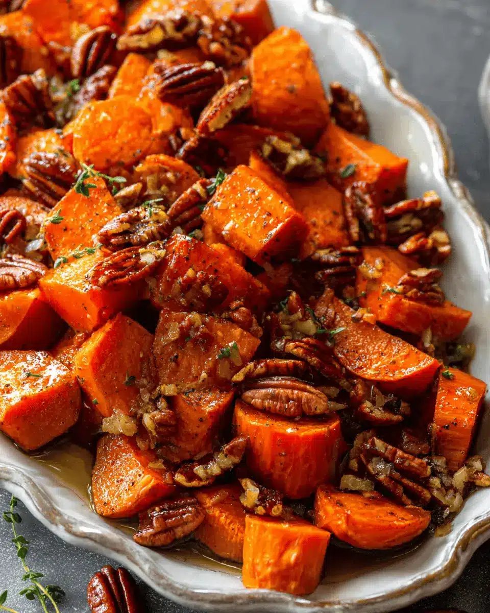 In summary, Maple-Pecan Roasted Sweet Potatoes are not just a visual delight; they pack a flavor punch that will elevate any meal. Their perfect blend of sweetness and crunch, combined with a hint of spice, makes them ideal for festive gatherings or weeknight dinners. Enjoy!