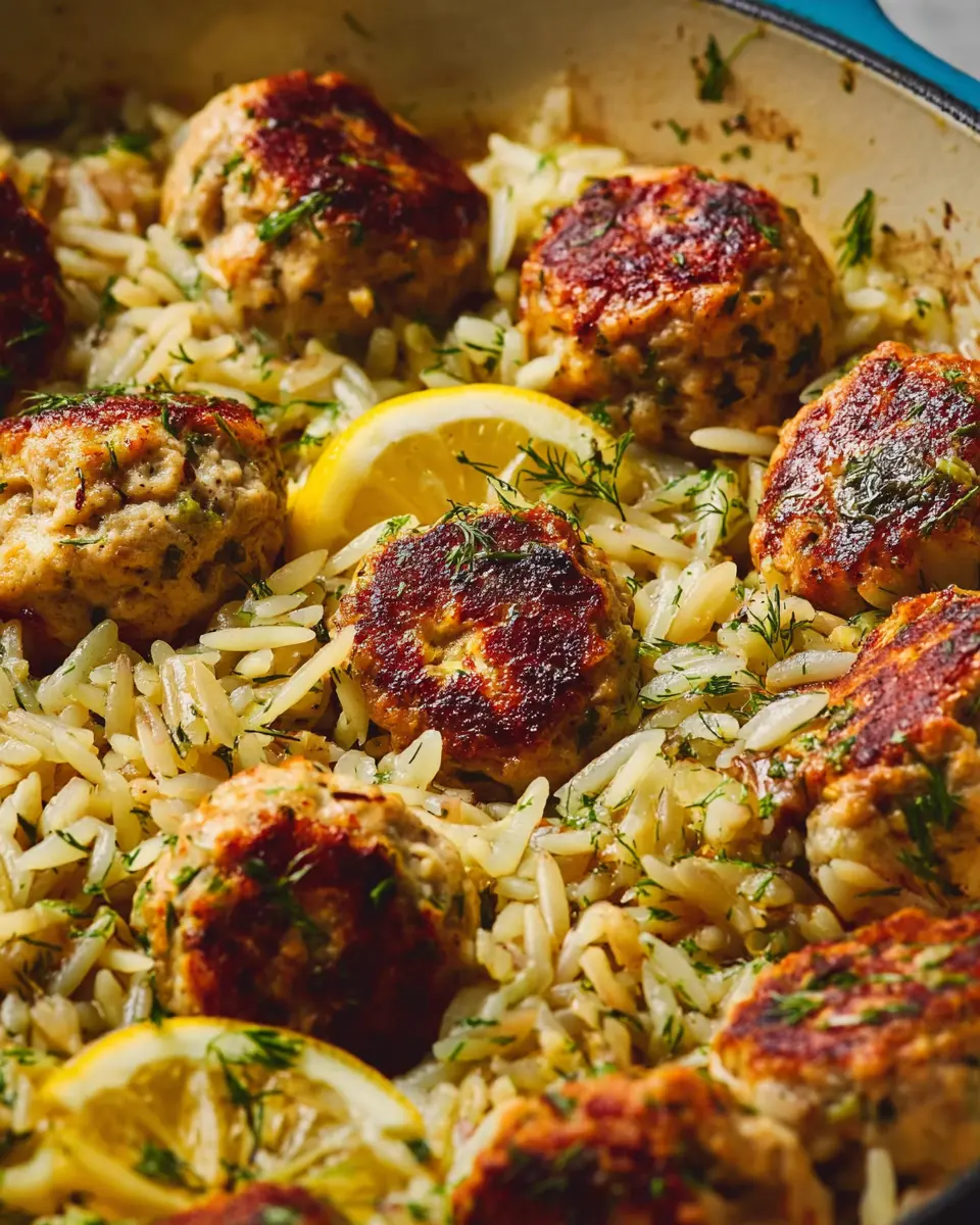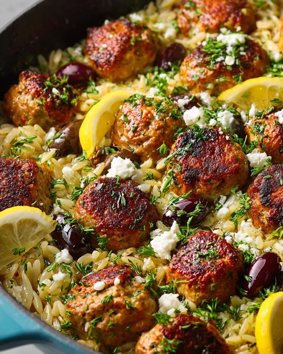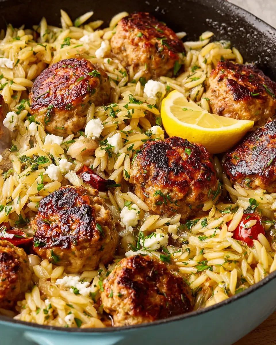 One-Pan Greek Chicken Meatballs and Lemon Orz