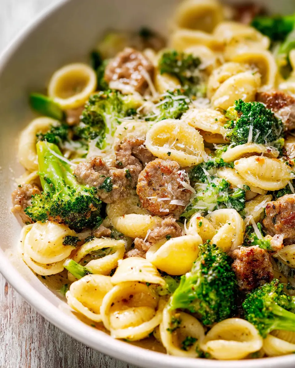 Orecchiette, which translates to "little ears" in Italian, is a pasta shape that holds onto sauces beautifully, making every bite a flavorful experience. Its unique texture also pairs wonderfully with the sautéed sausage and tender broccoli, giving you a wonderful contrast that keeps things interesting on your plate.
