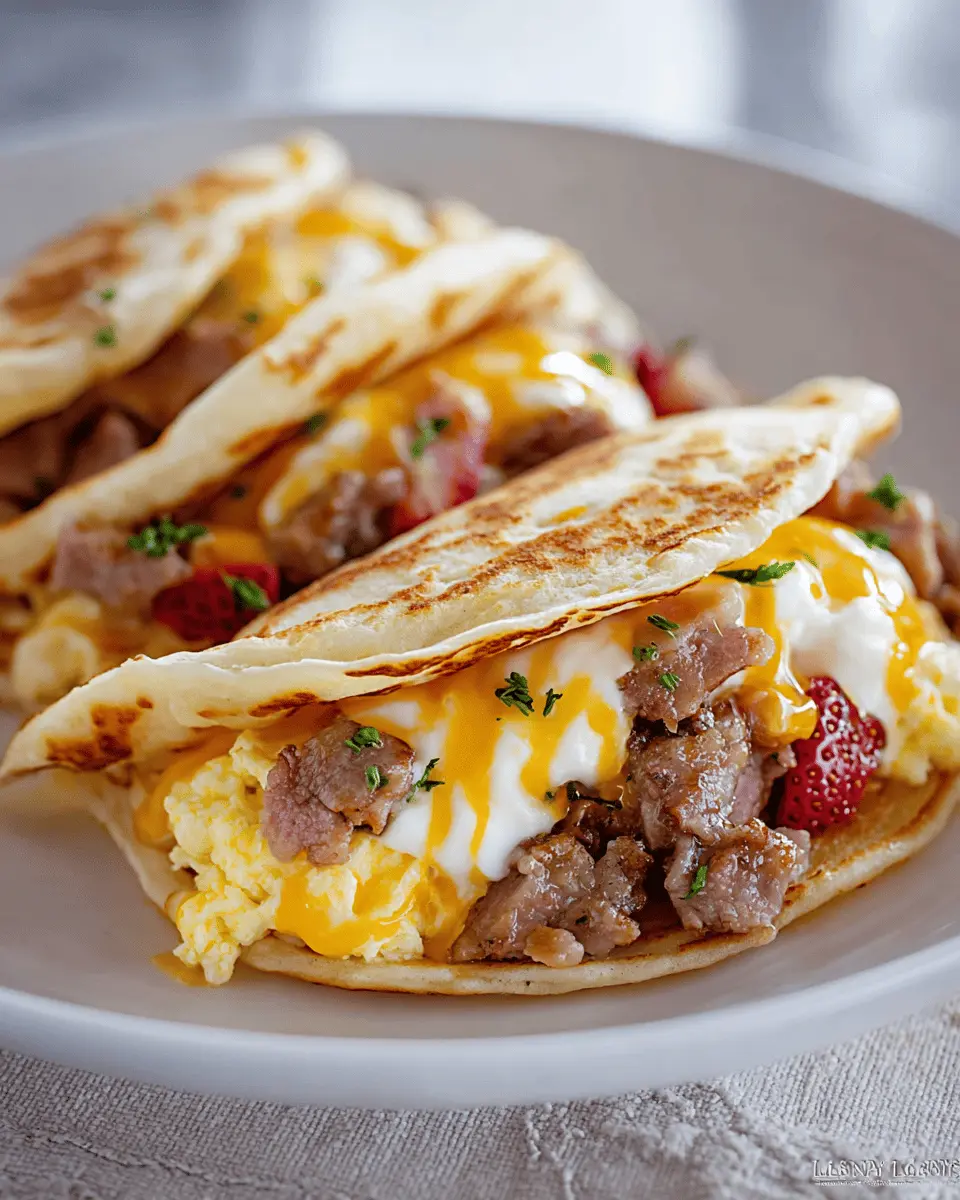 When you whip up Pancake Tacos for Breakfast or Dinner, consider adding fresh fruits like berries, sliced bananas, or citrus. These brighten the plate and add a nutritious kick! A dollop of Greek yogurt can enhance creaminess, and a sprinkle of cinnamon lifts the flavor, making a delightful morning treat. Pair with a smoothie or cold brew coffee for an energizing start to your day.