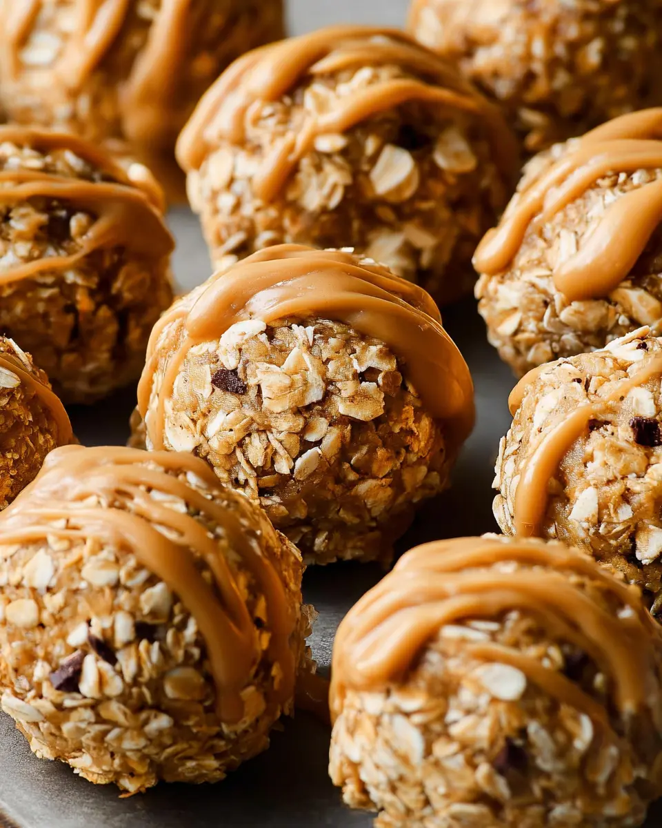 Elevate your peanut butter oat balls by rolling them in shredded coconut, chopped nuts, or even crushed graham crackers for extra texture. You can also stick a toothpick in each ball for a fun, bite-sized treat. For a tasty twist, drizzle a little melted dark chocolate or caramel sauce over them before serving. Even try incorporating them into a yogurt parfait for a balanced breakfast or snack option! Check out more ideas at Epicurious.