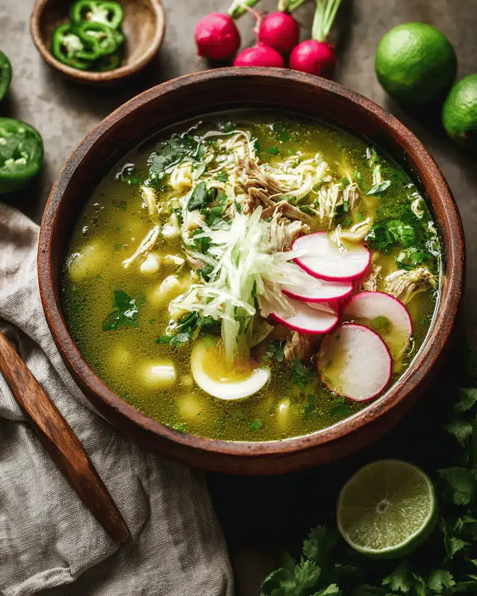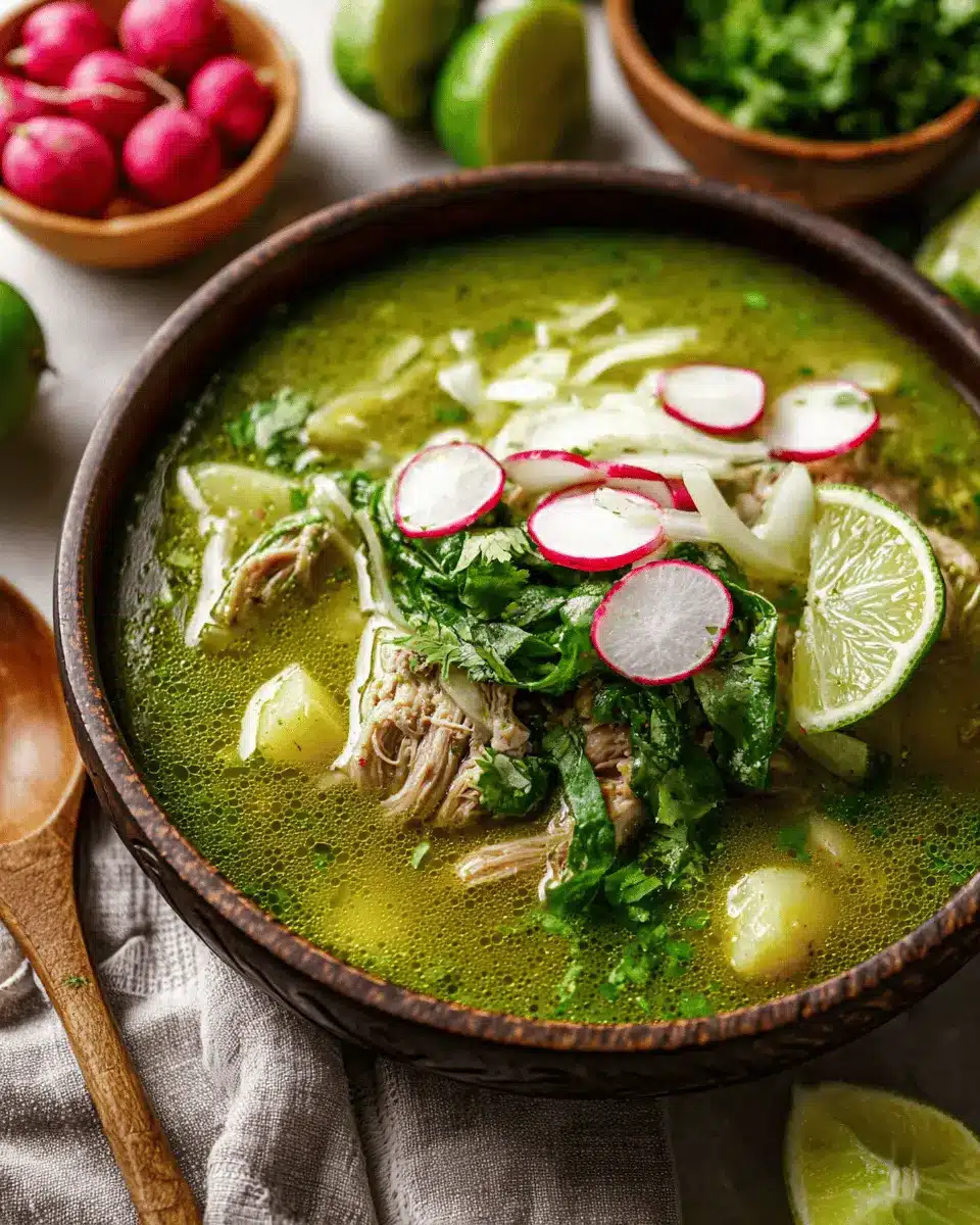 In summary, Pozole Verde is more than just a dish; it’s a warm hug in a bowl, perfect for gatherings or cozy nights in. With its vibrant flavors and customizable toppings, it offers a delightful culinary experience. So don your apron, and enjoy this comforting classic that brings everyone together!