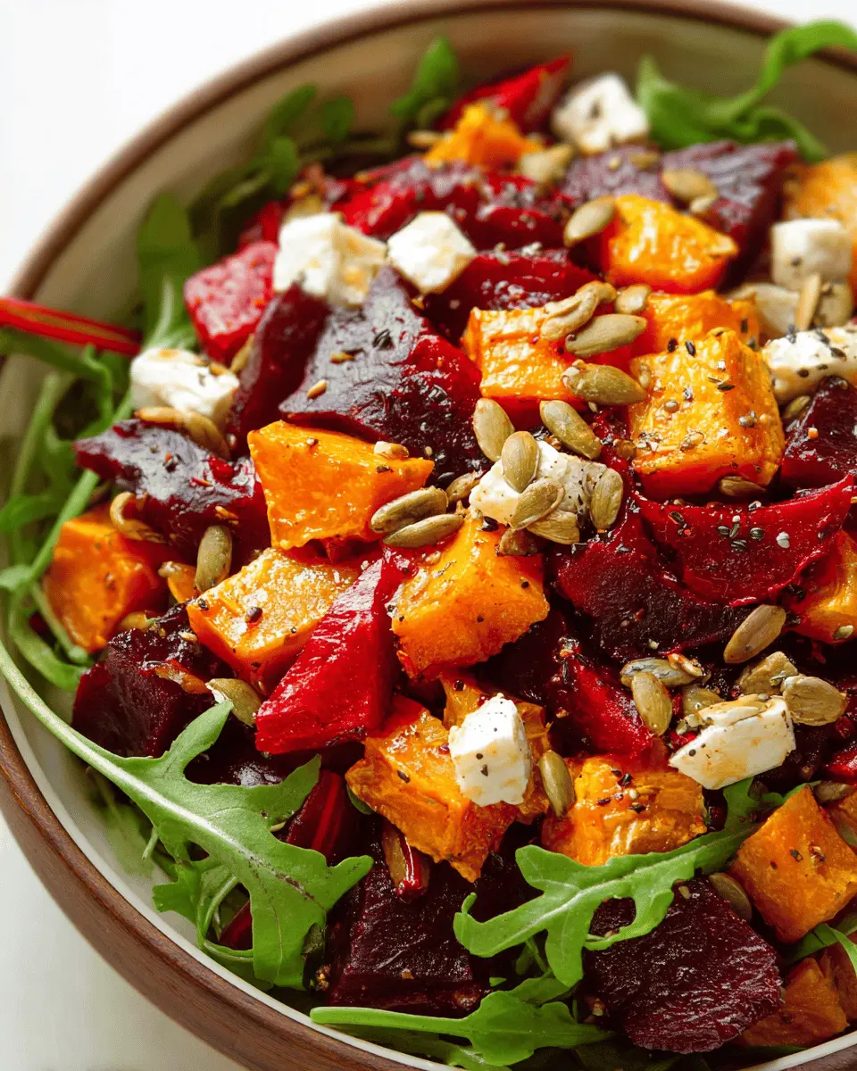 To make your salad truly irresistible, think about presentation! Serve it in a large, rustic wooden bowl to invite sharing. Alternatively, individually plated portions of the Roasted Pumpkin and Beetroot Salad can impress guests at dinner parties. For a pop of color, sprinkle microgreens on top and add edible flowers like nasturtiums or pansies. These not only enhance the visual appeal but also add a hint of subtle flavor. Enjoy experimenting with your presentation—you might just find your new favorite way to serve this earthy, delightful dish!