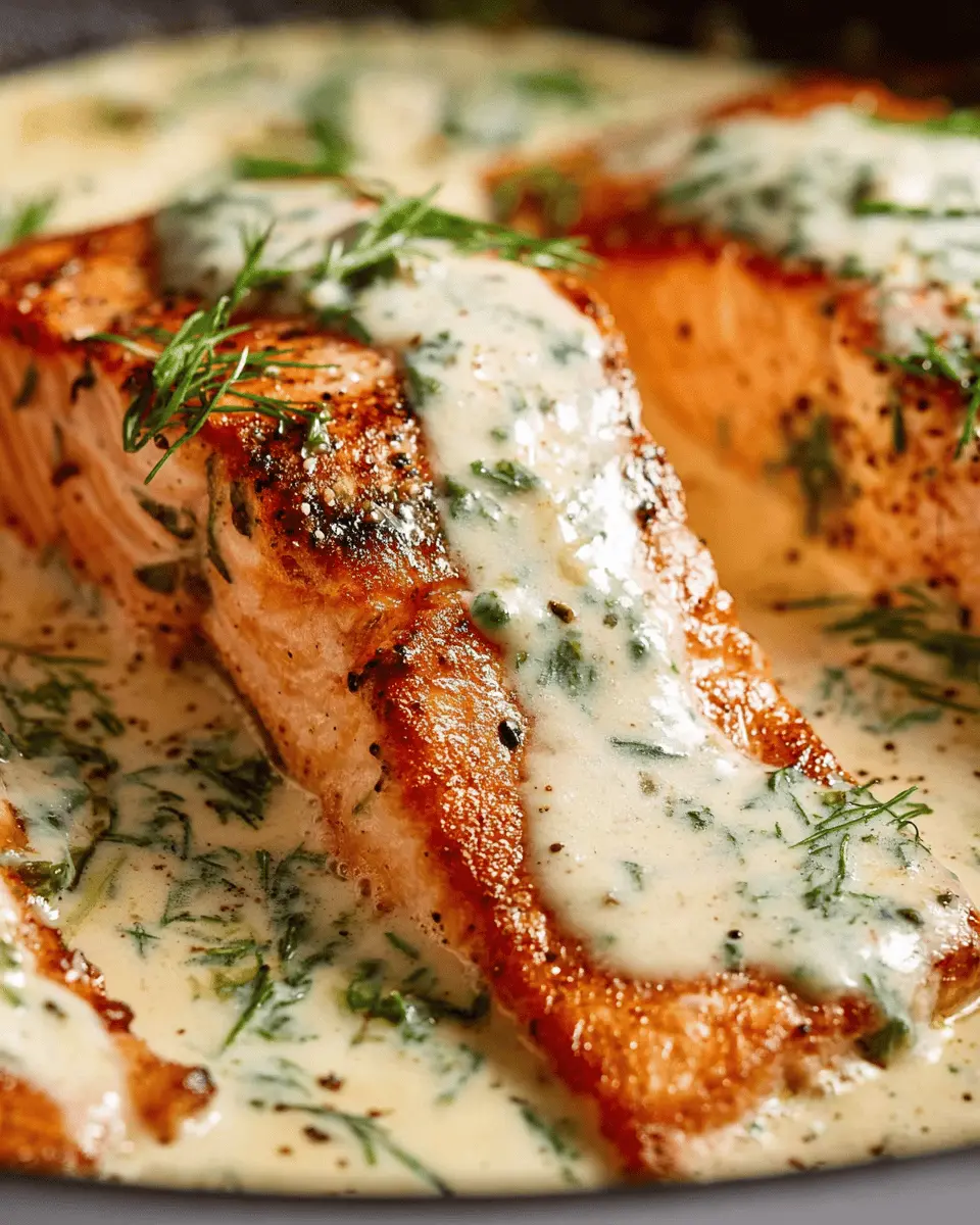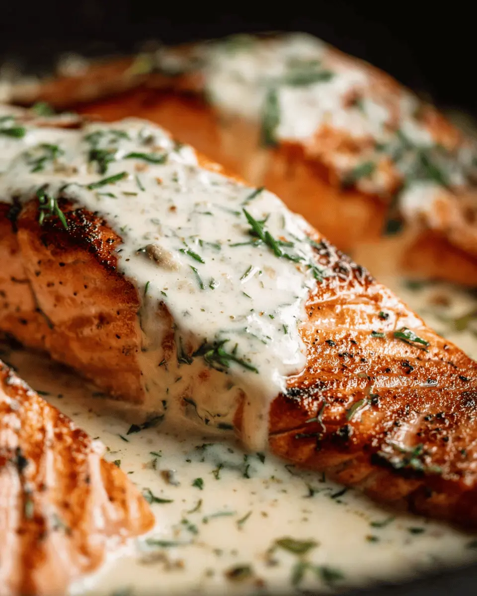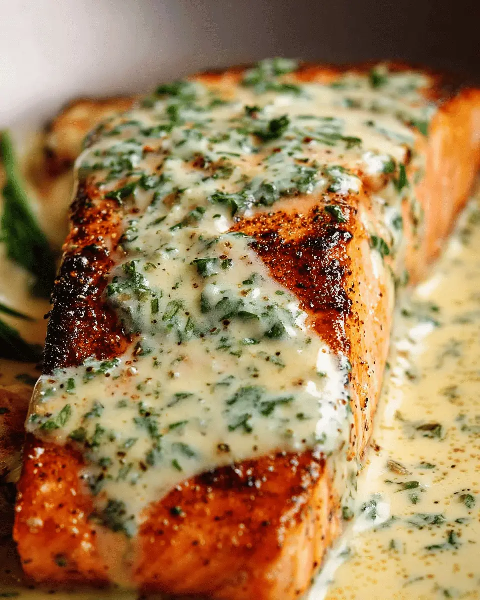 Salmon with Herb & Garlic Cream Sauce: A Decadent Delight at Home