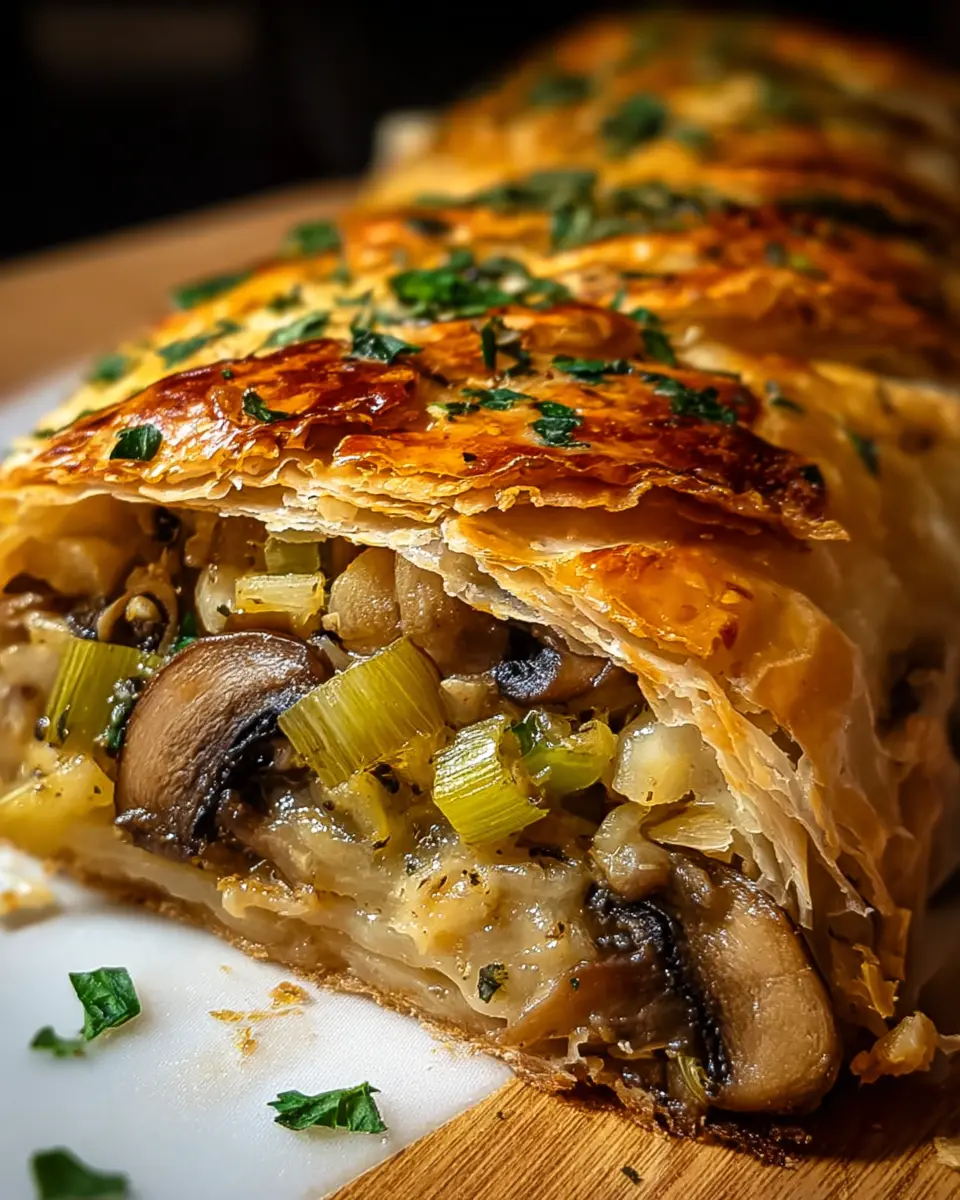 Savory Mushroom Strudel with Leeks and Parmesan Cheese Bliss
