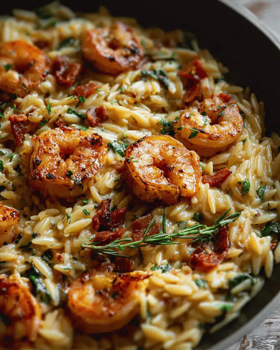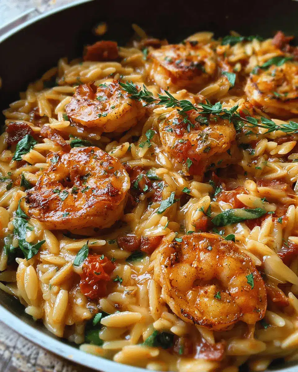 The combination of succulent shrimp, creamy sauce, and tender orzo pasta creates a harmonious blend that feels both indulgent and nutritious. Plus, its versatility means you can swap in seasonal vegetables or use whatever proteins you have on hand—chicken, turkey bacon, or even veggies for a plant-based version!