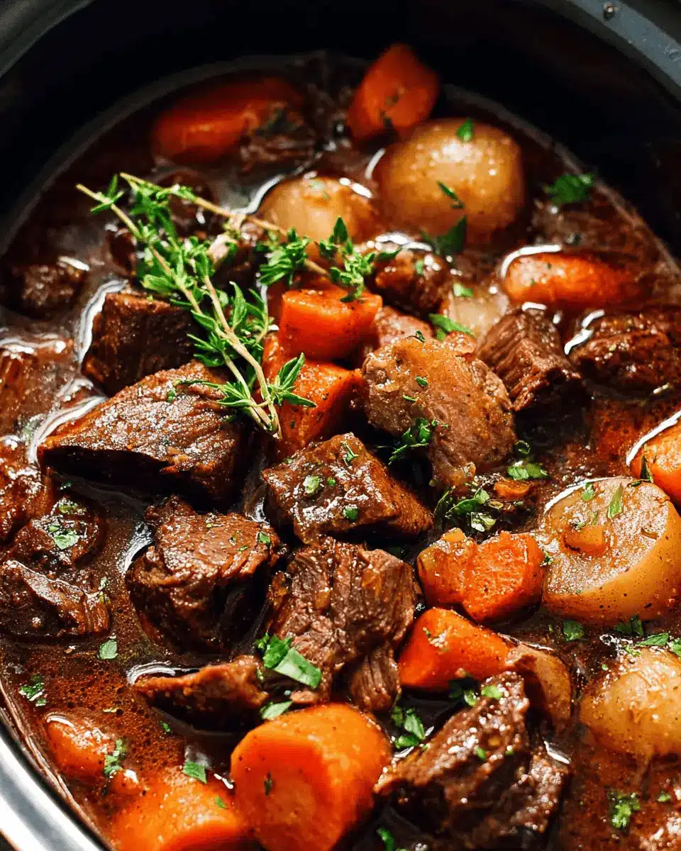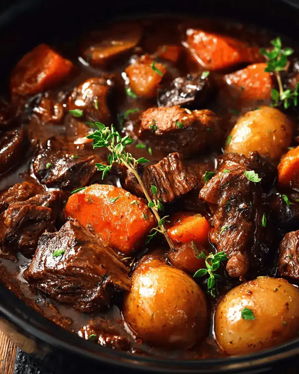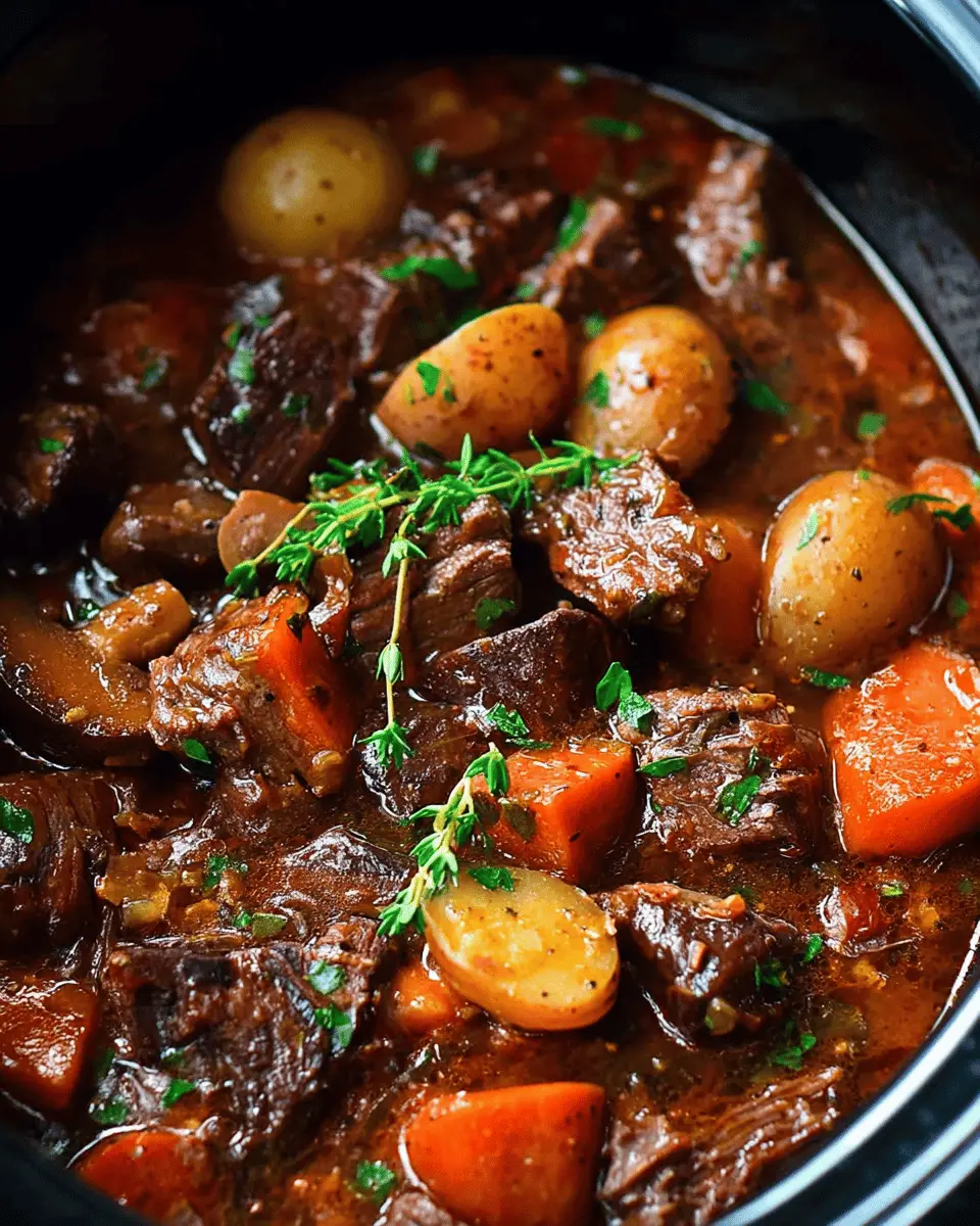 In summary, this slow cooker beef bourguignon effortlessly combines rich flavors and tender textures, making it a delightful meal for any occasion. Perfect for busy professionals, simply set it and forget it. Pair with mashed potatoes for a heartwarming experience. Enjoy your culinary adventure!