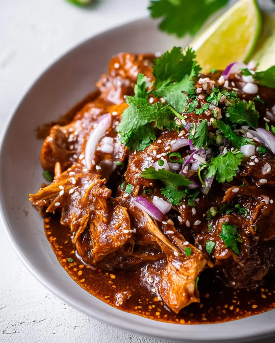 When enjoying your slow cooker chicken mole, consider serving it over a steaming bed of rice or even spiralized zucchini (zoodles) for a healthy twist. The rich, complex flavors of the mole sauce beautifully complement the mildness of rice, soaking up all that delicious goodness. If you're cutting carbs, zoodles provide the perfect base, adding freshness while keeping the dish light.