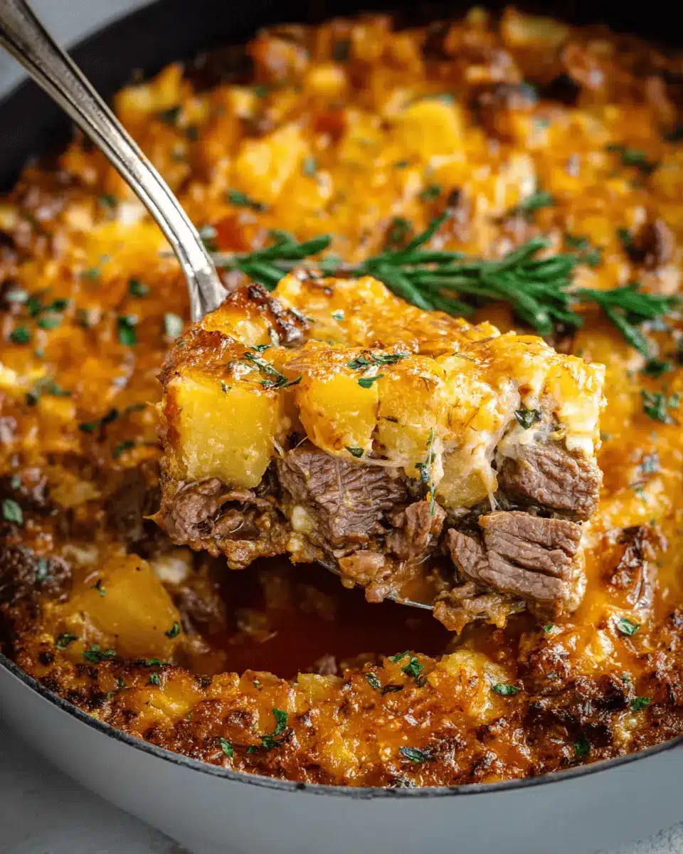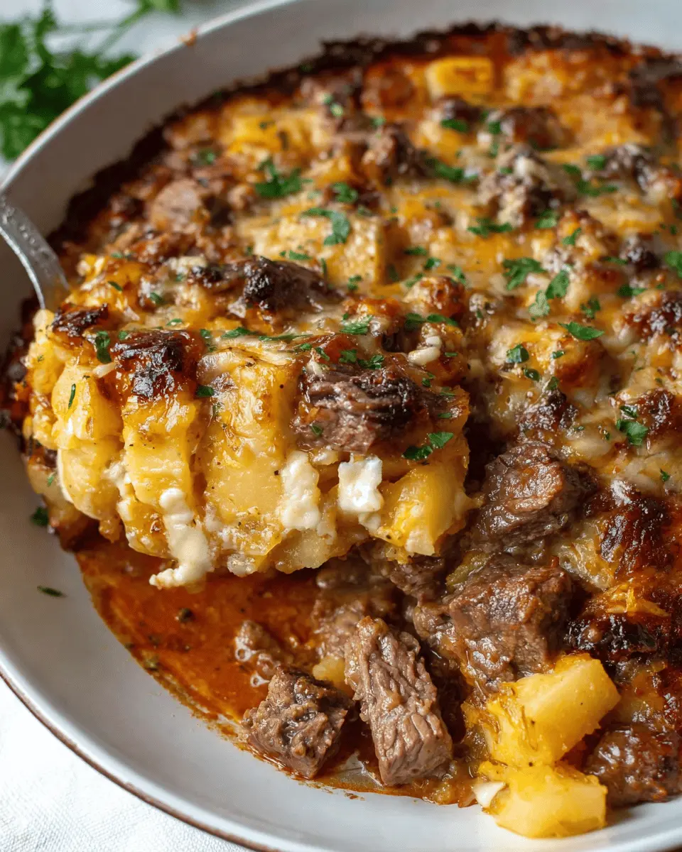 Slow Cooker Steak and Cheddar Potato Casserole