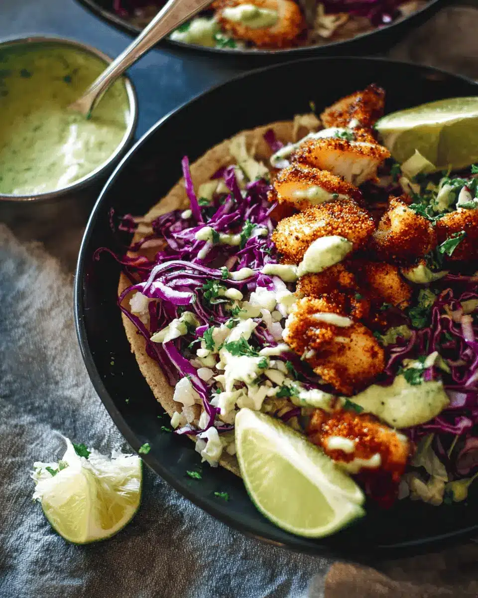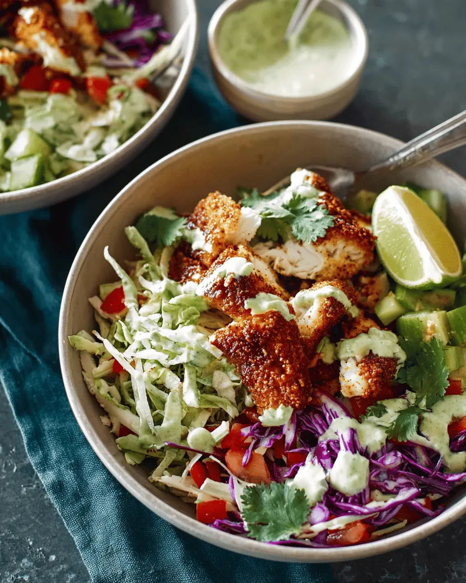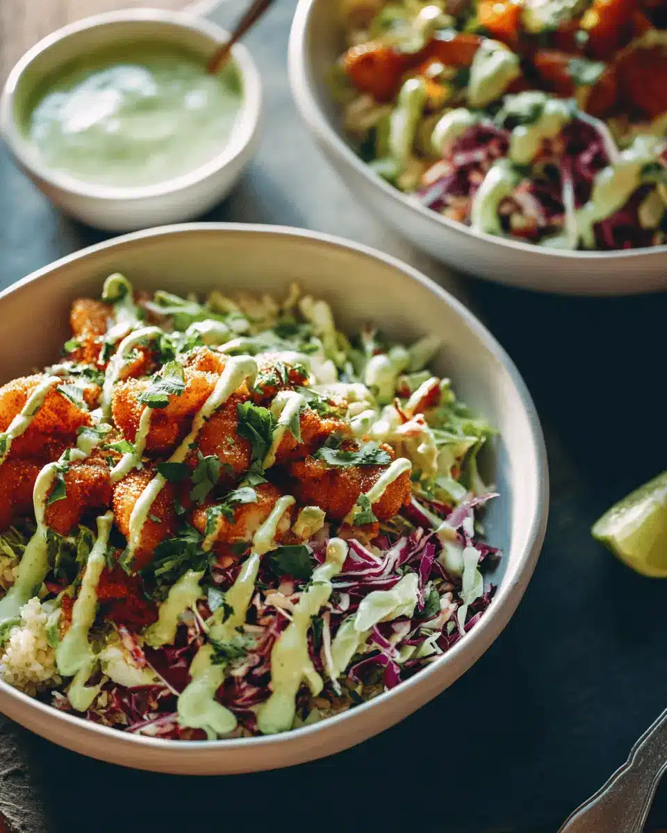 Spicy Fish Taco Bowls with Cilantro Lime Slaw