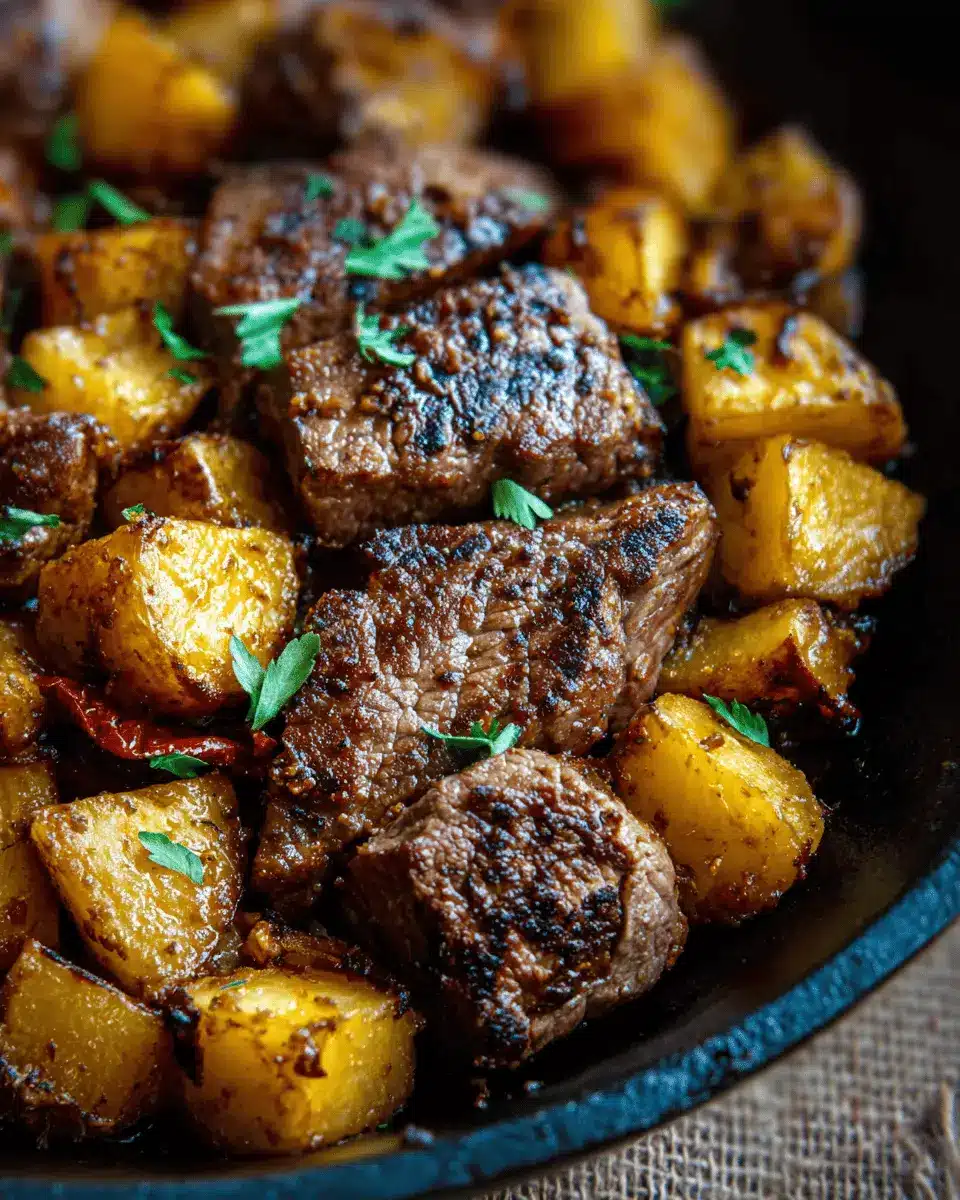 Absolutely! You can prep the potatoes in advance by dicing them and storing them in cold water to prevent browning. While it’s best to cook the steak fresh for optimal flavor and texture, you can cook everything and store it in the refrigerator for a couple of days. Just reheat gently on the stovetop, ensuring everything is warmed evenly.
