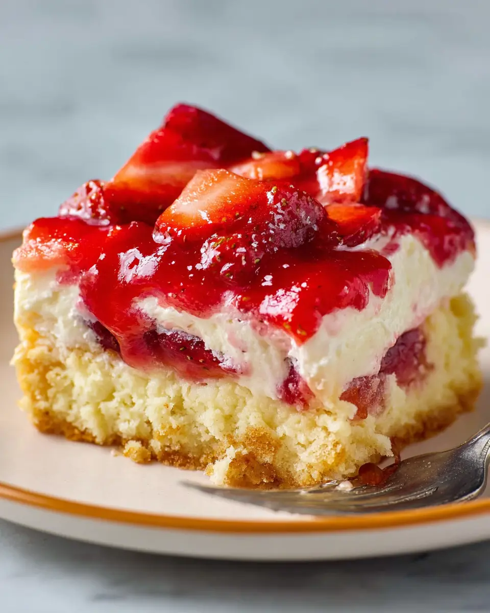 When you’re ready to serve, let it sit at room temperature for about 15 minutes before cutting into it. Feel free to garnish with fresh strawberries if you like. This strawberry cheesecake dump cake will surely become a favorite at your gatherings!