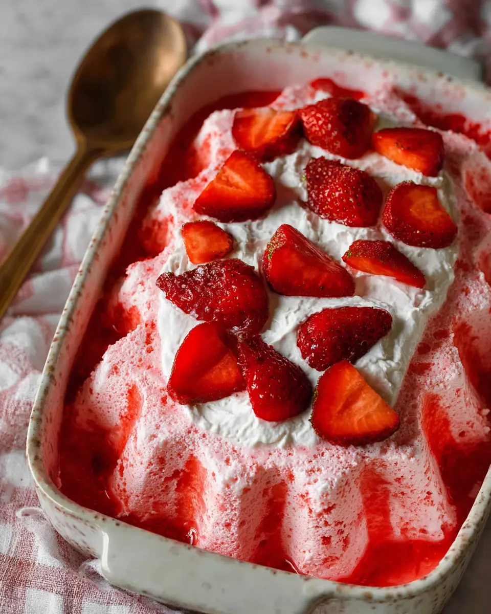 This strawberry jello dessert is not just visually stunning but also incredibly easy to prepare. With its delightful layers of flavor and fluffy texture, it adds a refreshing touch to any gathering. Perfect for weeknight treats or special occasions, this dessert is sure to impress friends and family alike!