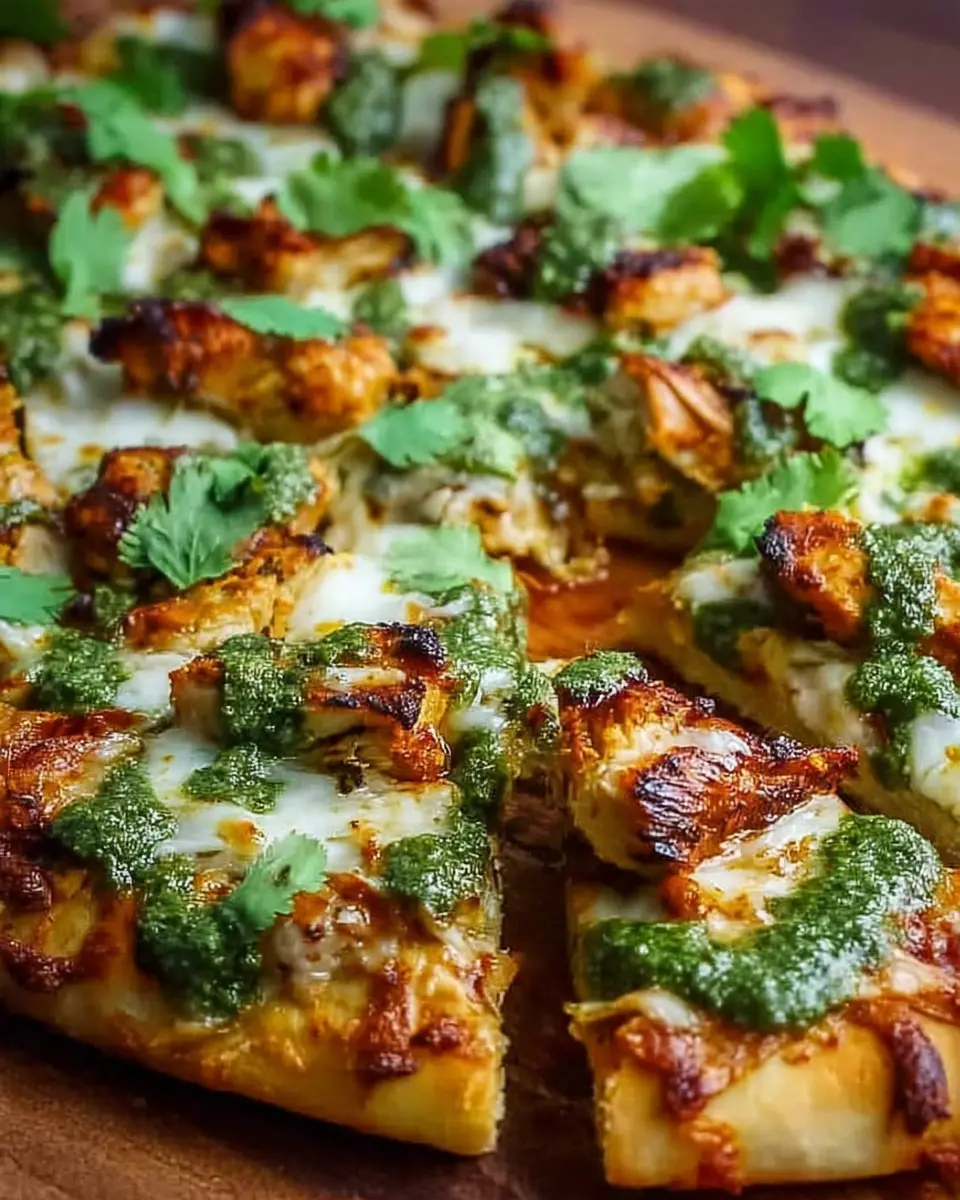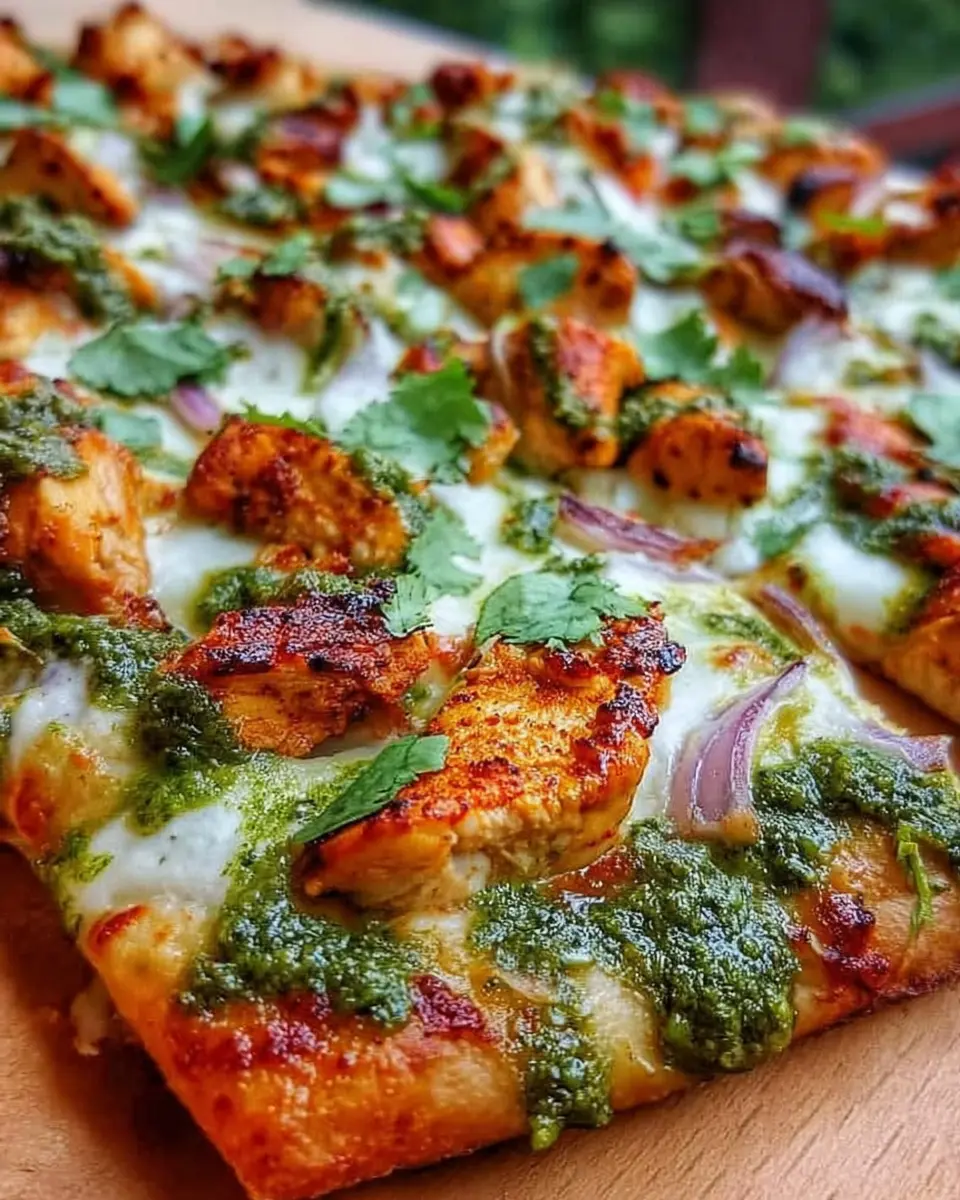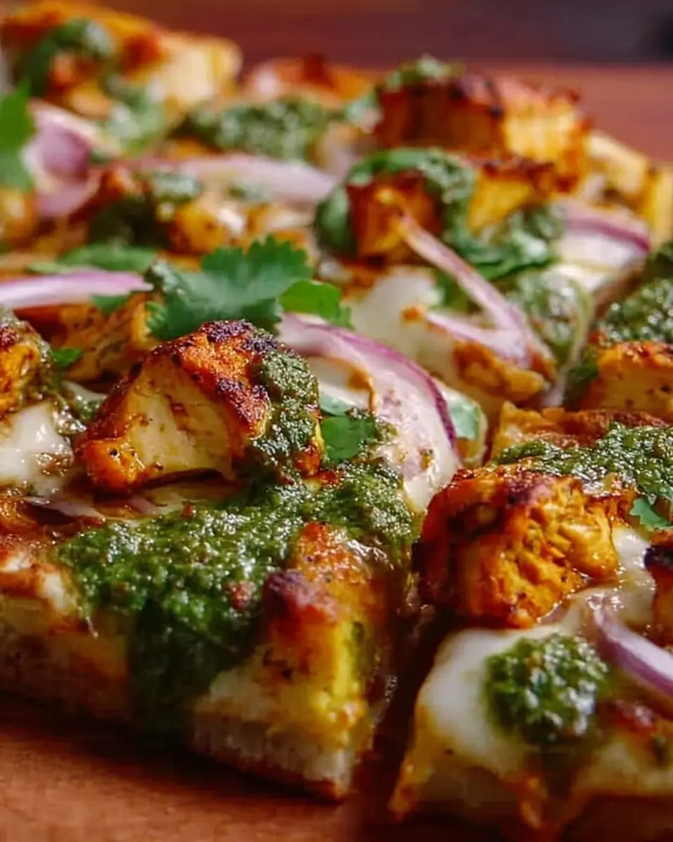Tandoori Chicken Pizza with Cilantro Mint Chutney