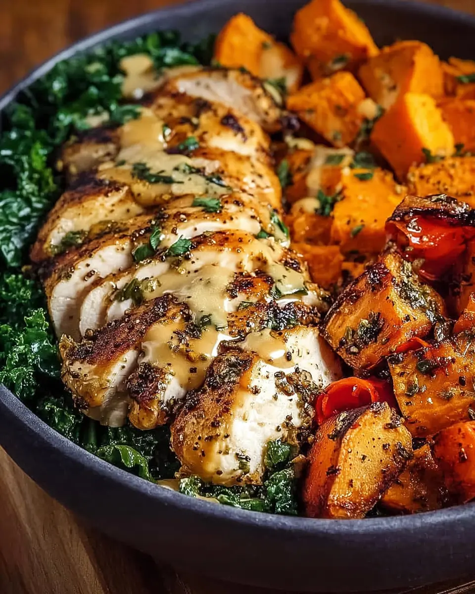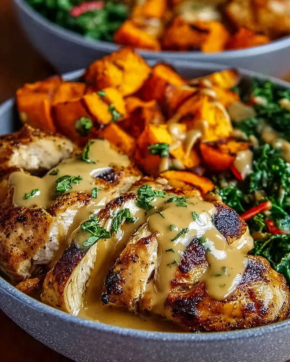 Tasty Maple Dijon Chicken & Sweet Potato Bowls