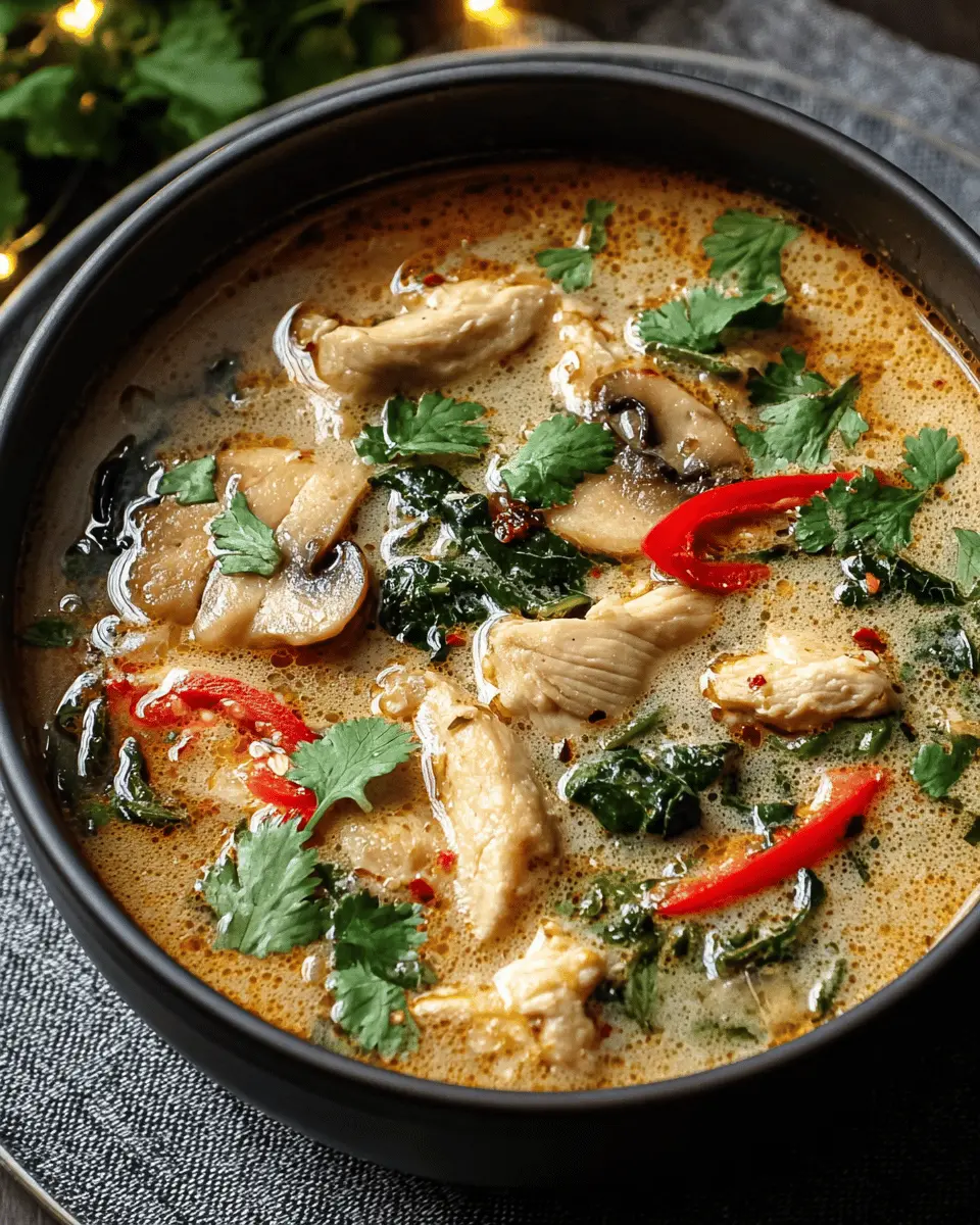 Garnishing your Thai Chicken Soup can transform it visually and add extra layers of flavor. Try topping your soup with: