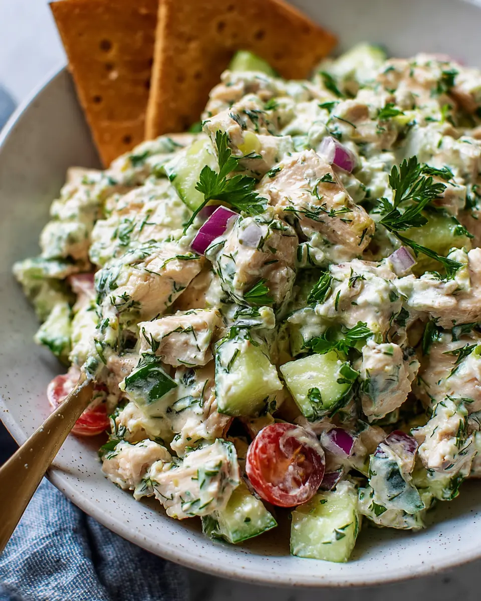 Why should you try it? Well, aside from being incredibly tasty, Tzatziki Chicken Salad is packed with protein and fresh ingredients. Greek yogurt provides a nutritious alternative to traditional mayo, reducing calories while enhancing flavor and creaminess. Plus, with ingredients like crunchy cucumbers and zesty lemon, this salad bursts with freshness you won't find in your average dish.