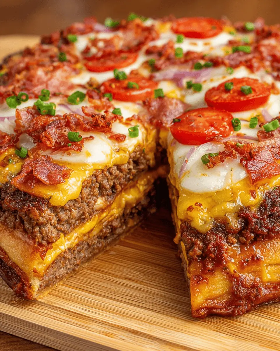 For a smoky spin, try a BBQ chicken ultimate pizza burger pie! Replace the ground beef with shredded chicken and slather on your favorite BBQ sauce instead of tomato. Add red onions and cilantro as toppings for extra flavor. It’s a mouthwatering take that combines classic BBQ flavors with the heartiness of a pizza pie. Perfect for warm gatherings or a cozy dinner at home!