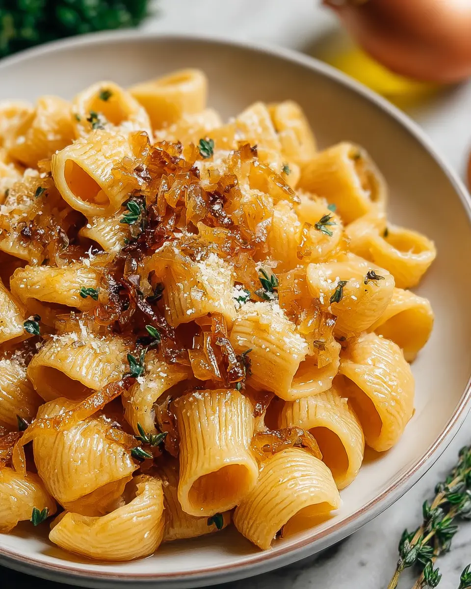 Caramelizing onions is an art that requires patience. Start by slicing your onions finely; this helps them cook evenly. Use medium to low heat and stir them frequently to avoid burning. To enhance the sweetness, add a pinch of salt early on. If you find they’re browning too fast, feel free to lower the heat further. The end goal is golden-brown, soft, and jam-like onions that will add depth to your vegan French onion pasta.